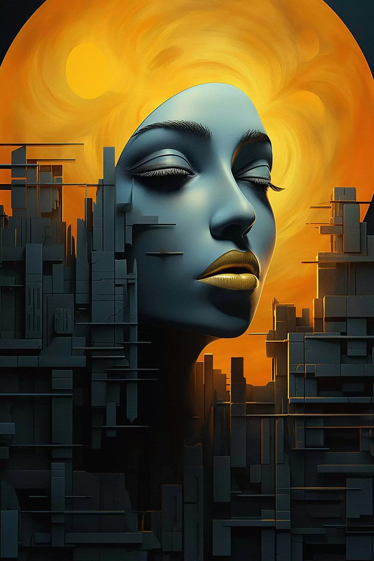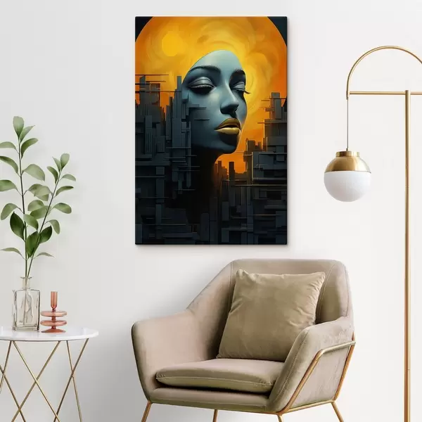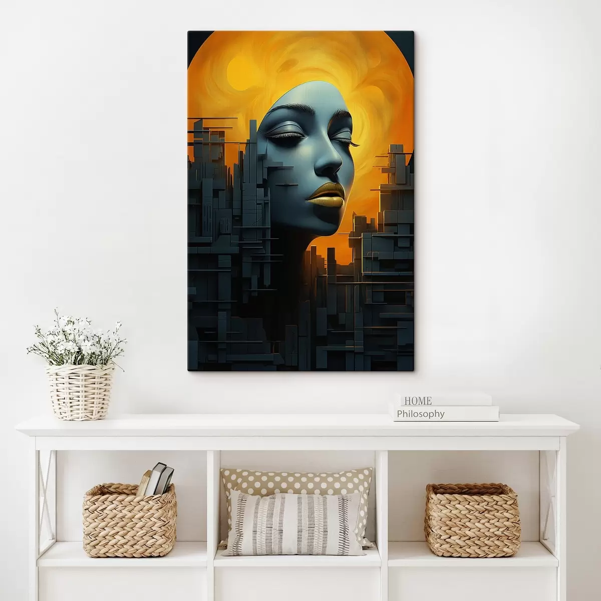 Quadri Persone, viso di ragazza città su sfondo astratto Nr s45342