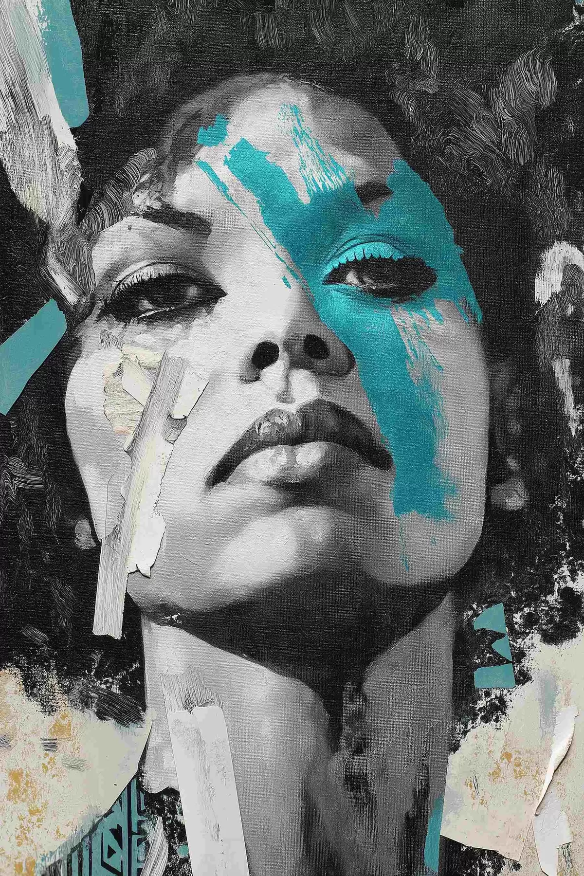 Quadri Ritratto a tecnica mista con frammenti di colore e texture Nr s45416