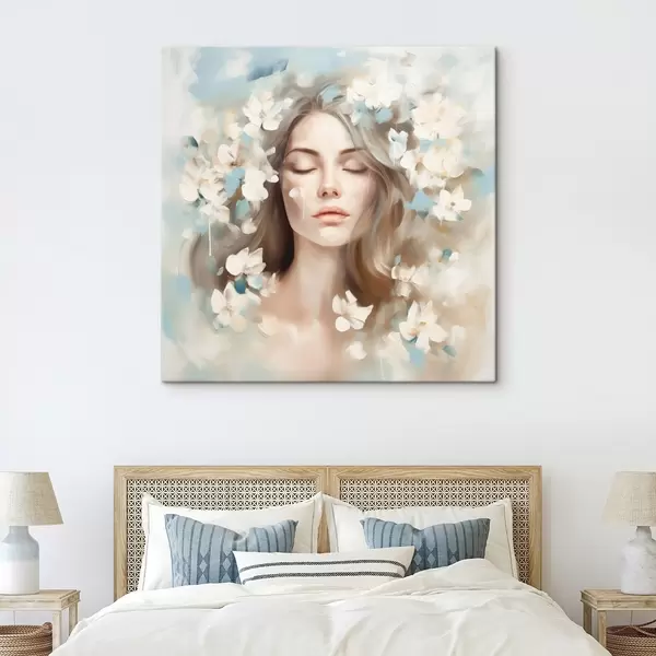 Quadri Ritratto astratto di donna con fiori in forma di pennellate Nr s45450