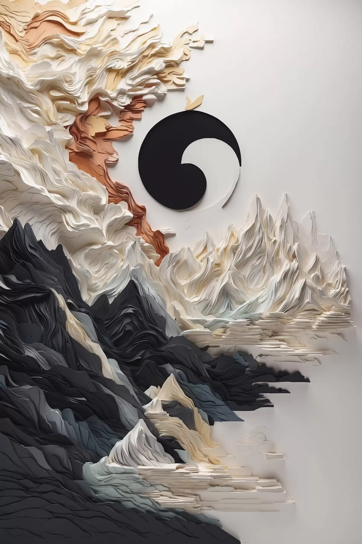 Quadri Paesaggio astratto con montagne in stile carta Nr s45482