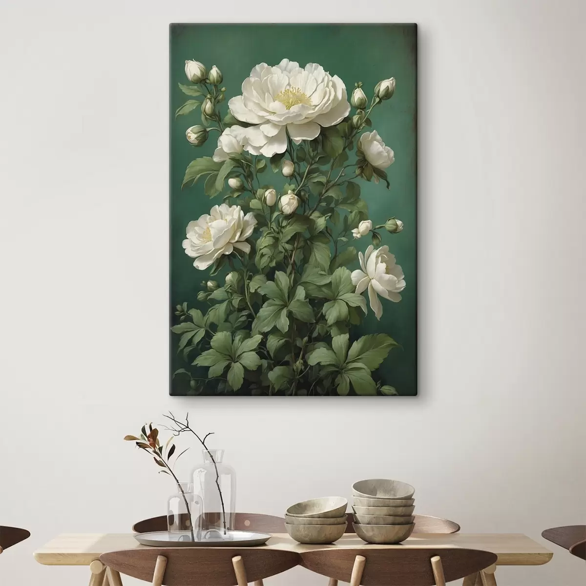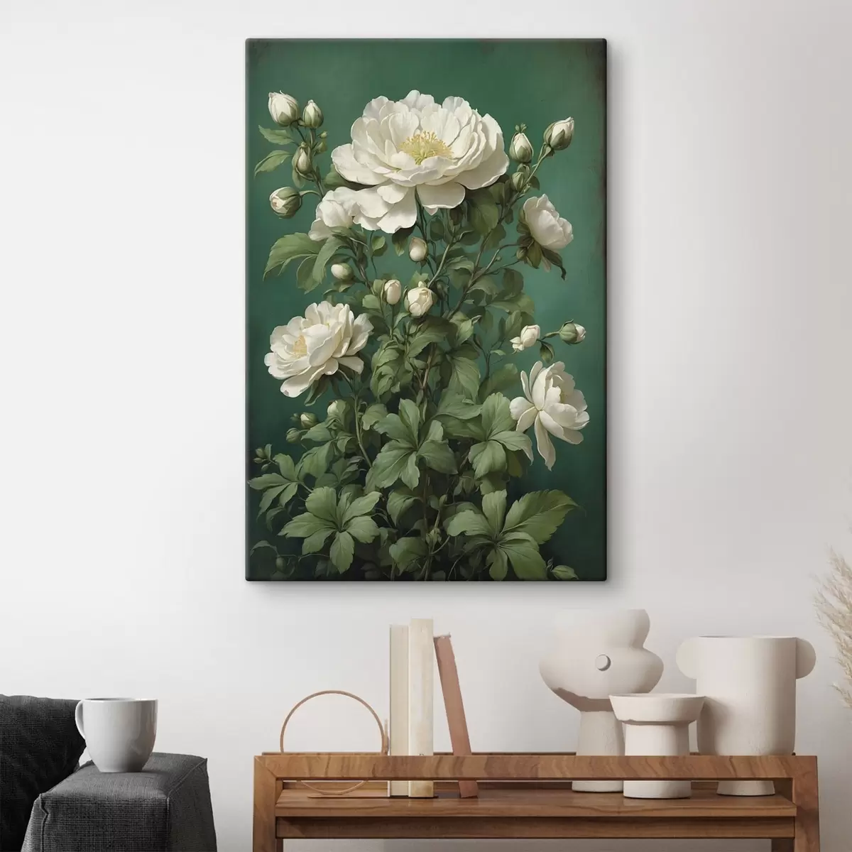 Quadri Fiori di peonia color crema su sfondo verde Nr s45491