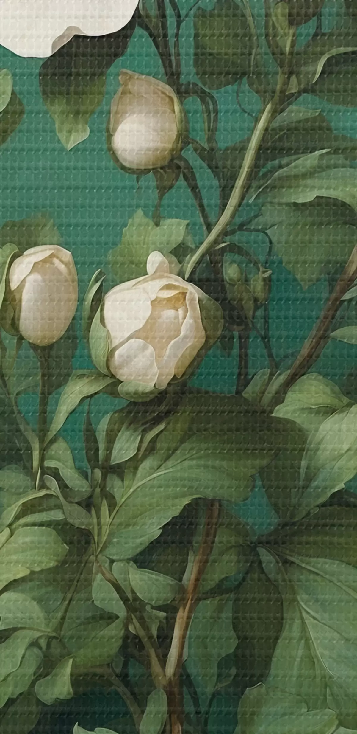 carta da parati Fiori di peonia color crema su sfondo verde nr. s45491