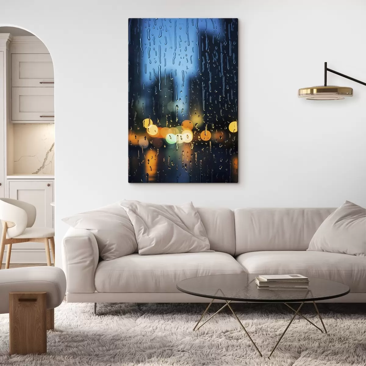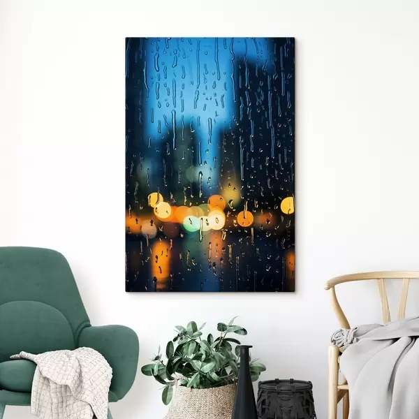 Quadri Gocce di pioggia sulla finestra con le luci notturne Nr s45500