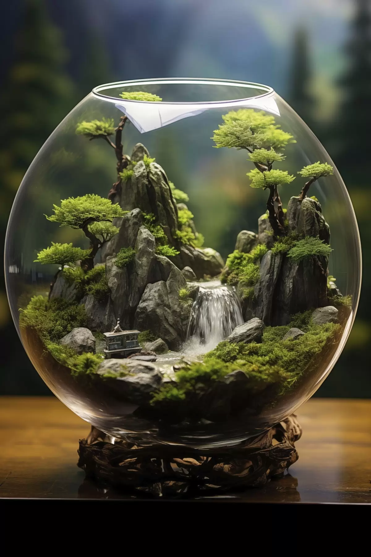 Quadri Paesaggio in miniatura con cascata in una sfera di vetro Nr s45502