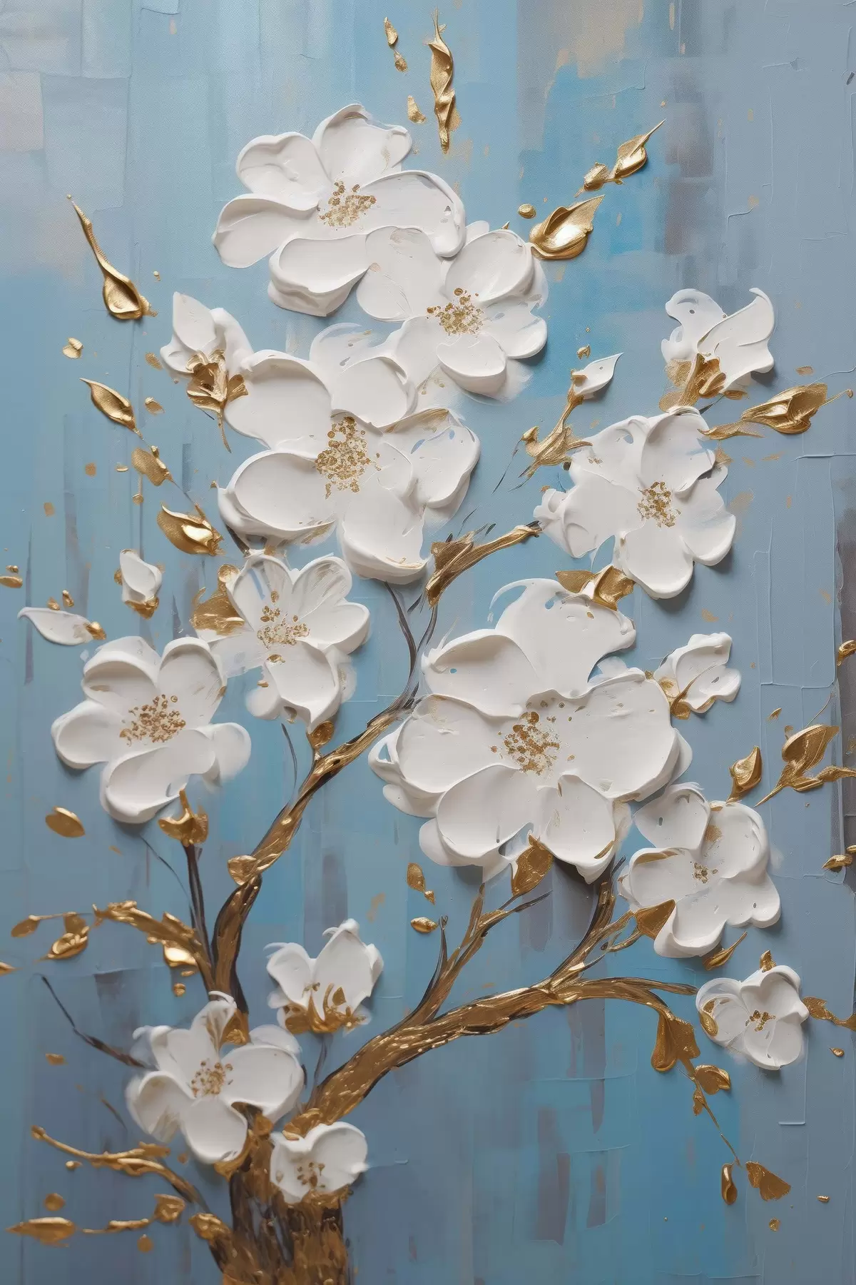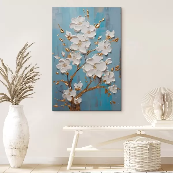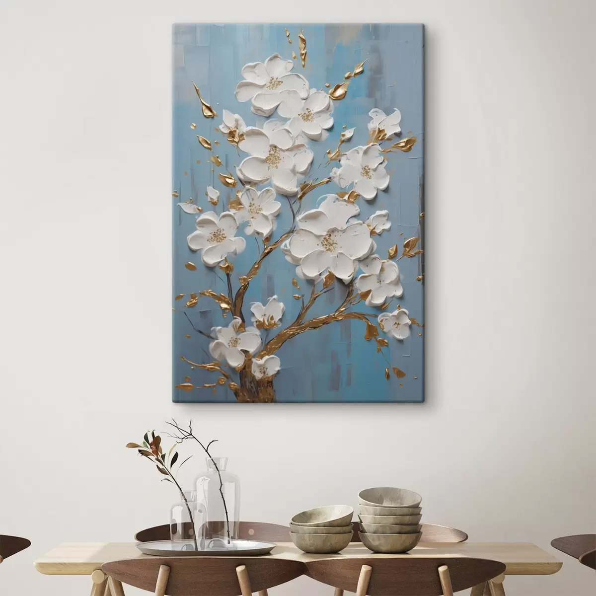 Quadri Fiori bianchi su un ramo: motivo decorativo nei toni del blu chiaro Nr s45541