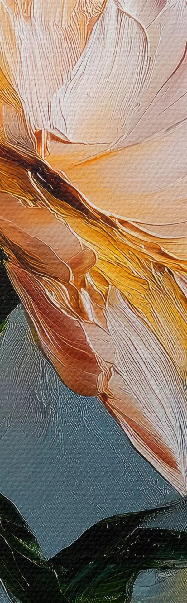 Sono disponibili tre tipi di materiale per l'ordinazione: Economic Canvas - materiale denso e resistente per la stampa digitale, identico alla tela del pittore, superficie impermeabile, riproduzione realistica dei dettagli, materiale a grana media. Premium Canvas - la trama ricorda la tela di un pittore (piccoli fili intrecciati). Riproduzione morbida e dettagliata dell'immagine su una superficie opaca. Eco-Premium - tessuto di alta qualità in 100% cotone. Grazie alle fibre naturali di cotone, il materiale è durevole e resistente all'usura. Eccellente riproduzione dei colori e dei dettagli.