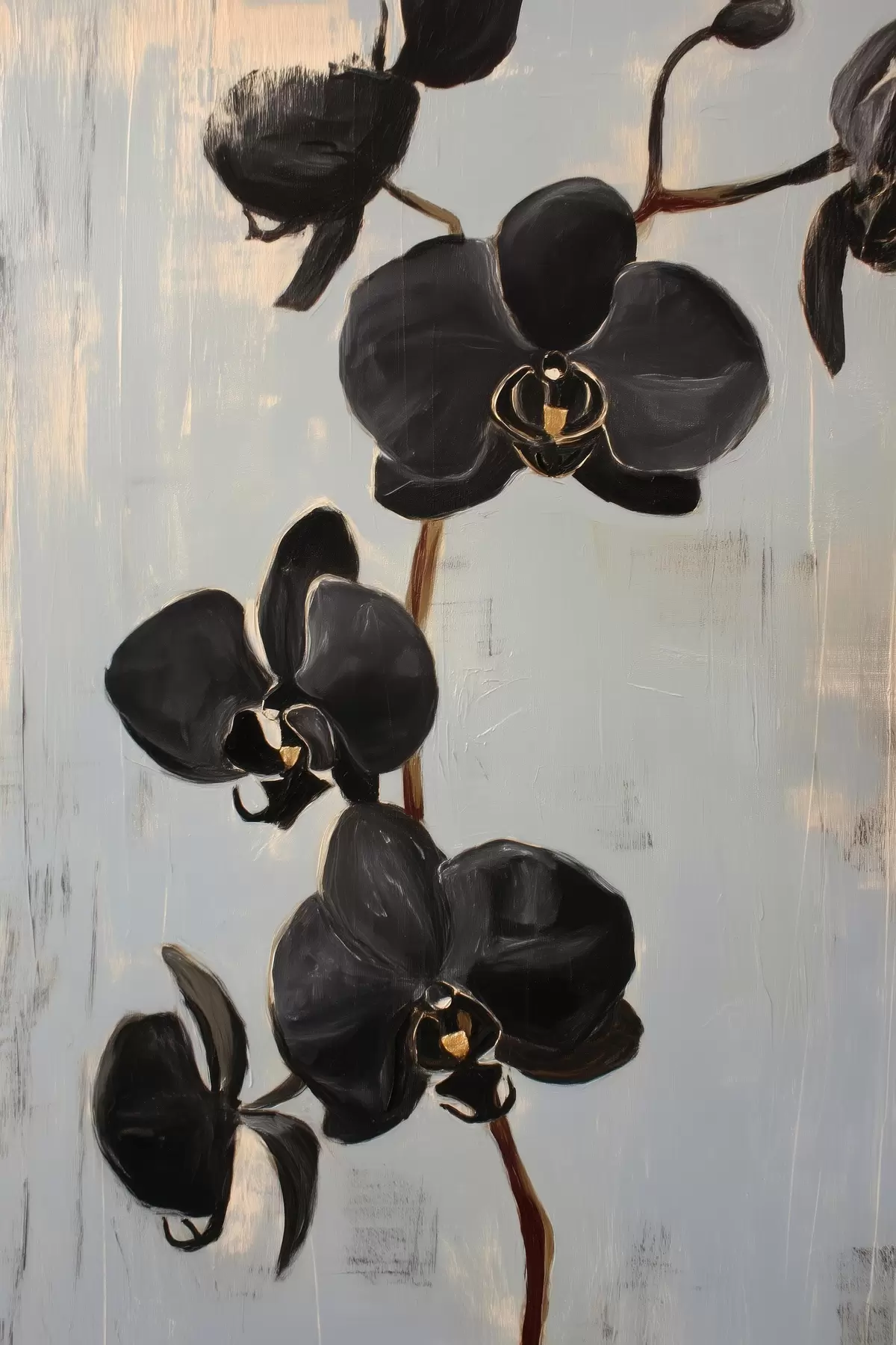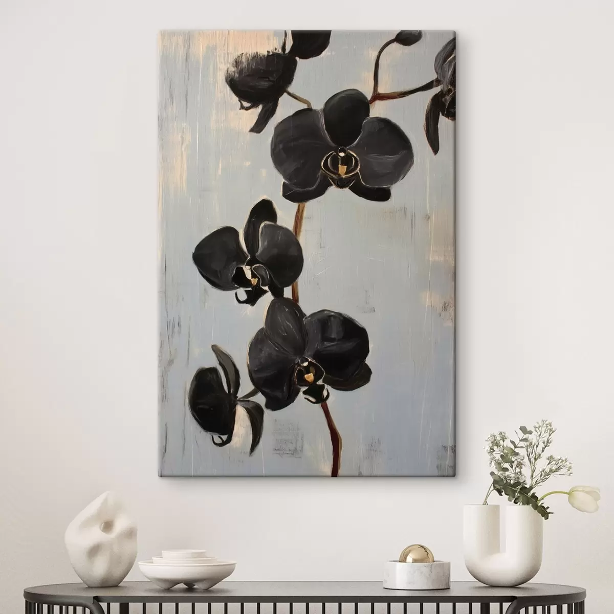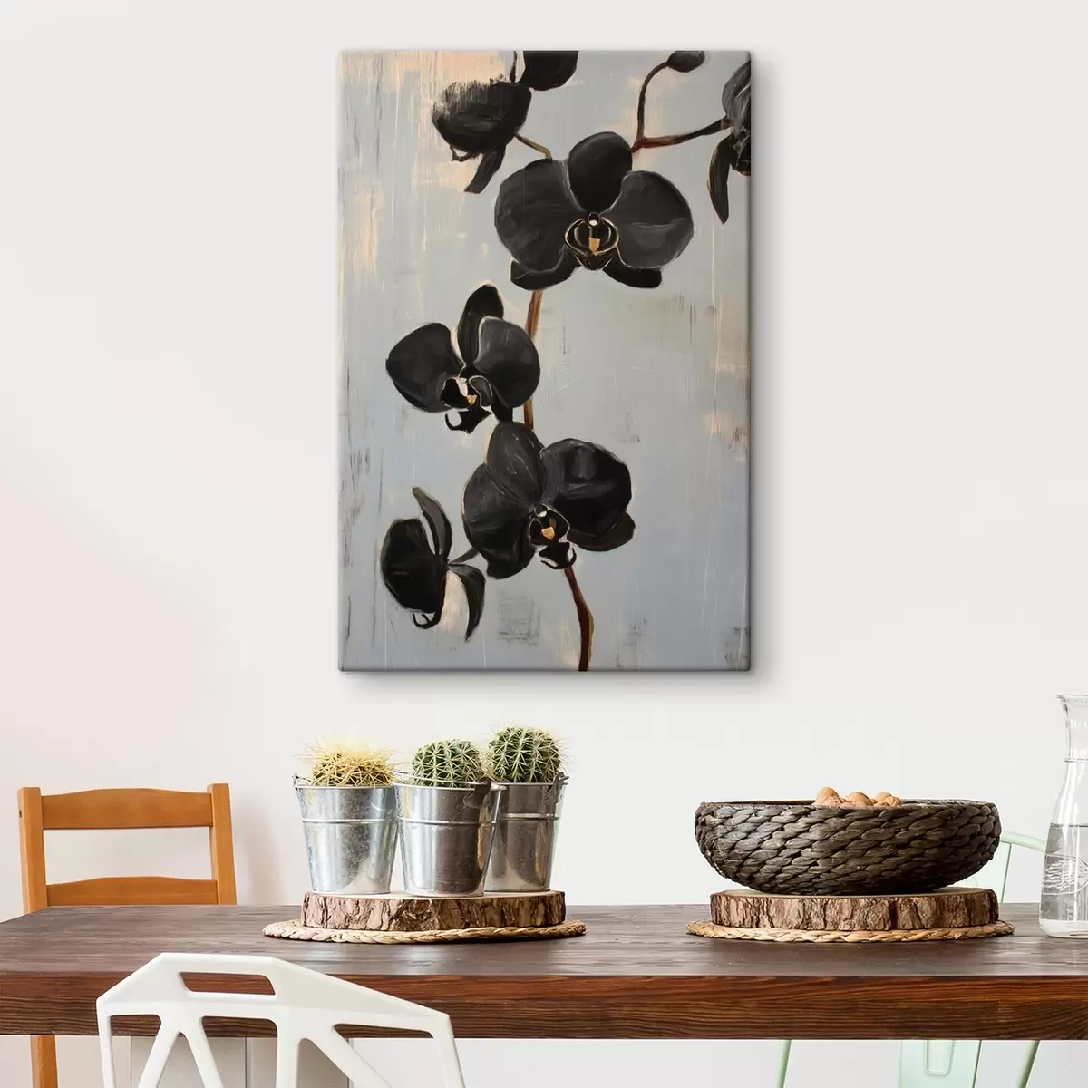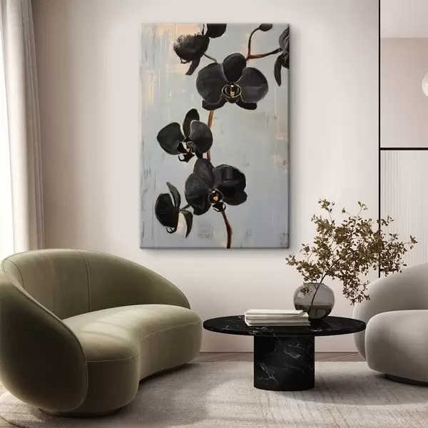 Quadri Orchidee decorative: fiori neri su sfondo grigio Nr s45547