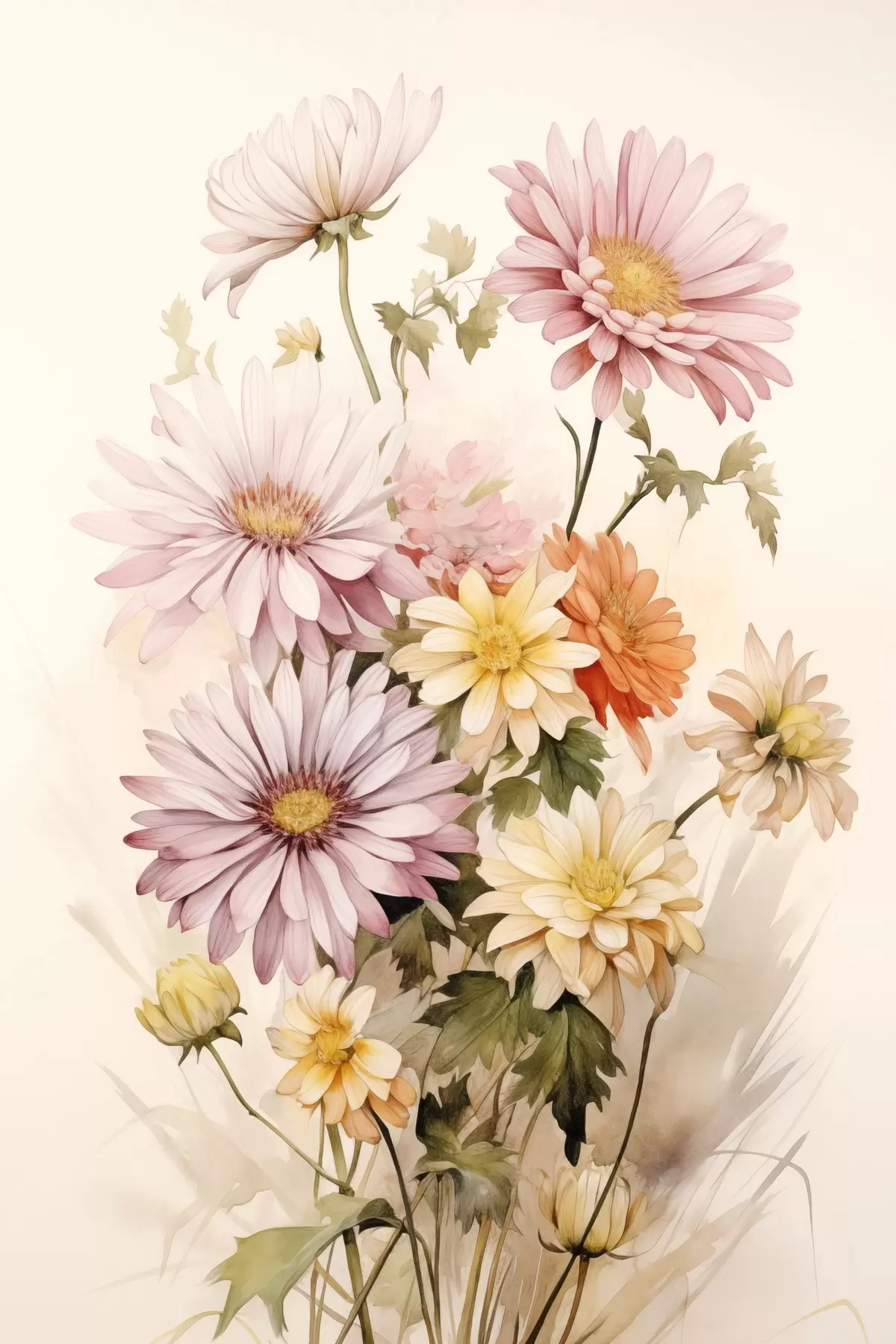 carta da parati Un bouquet di fiori colorati, stile acquerello morbido, su uno sfondo chiaro nr. s45559