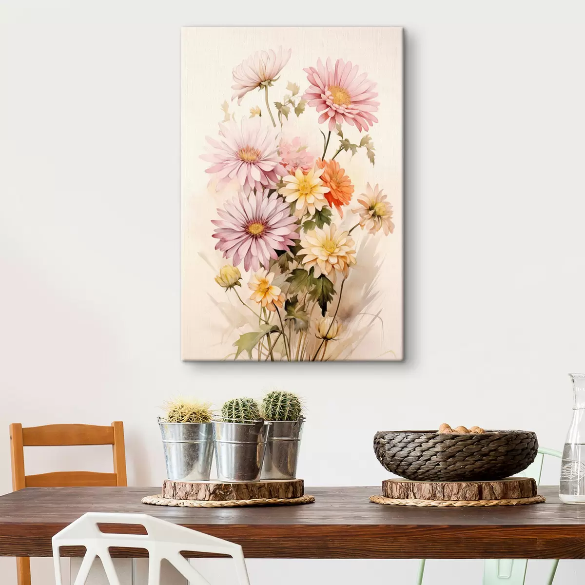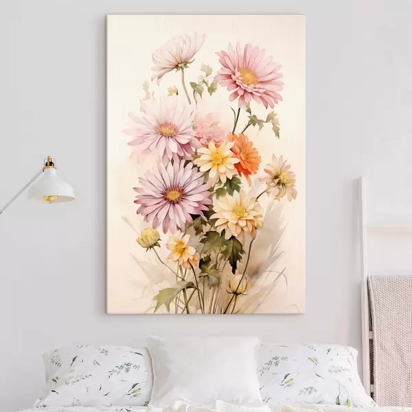 Quadri Un bouquet di fiori colorati, stile acquerello morbido, su uno sfondo chiaro Nr s45559