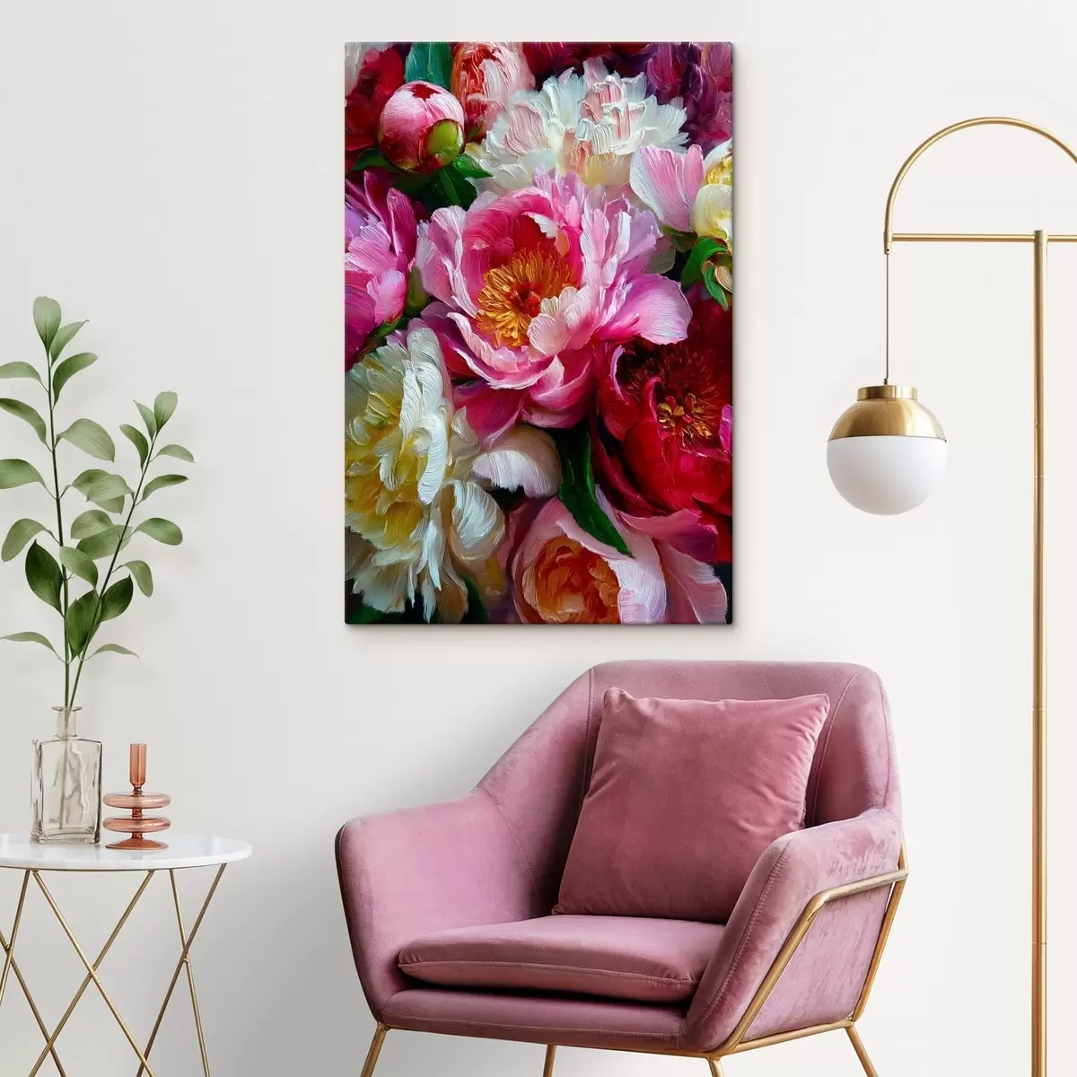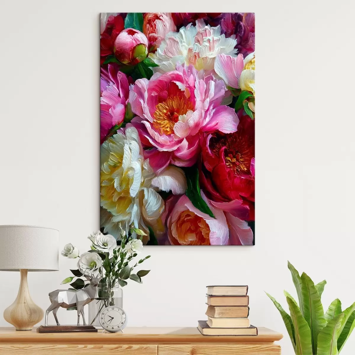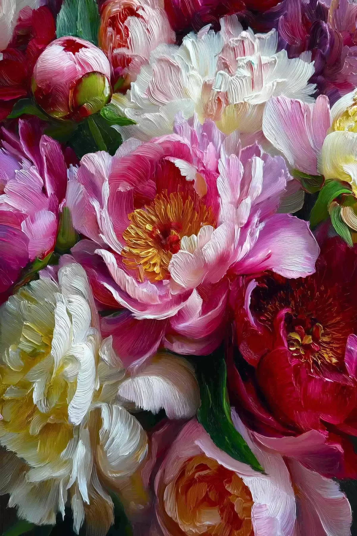 Quadri Peonie lussureggianti in tecnica d'impasto Nr s45595