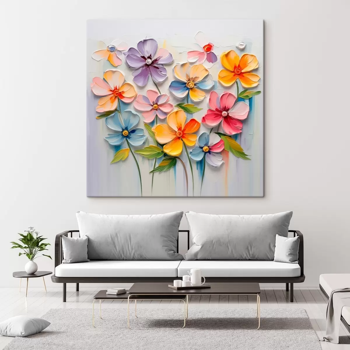 Quadri Natura morta floreale: fiori multicolori in tecnica d'impasto Nr s45598