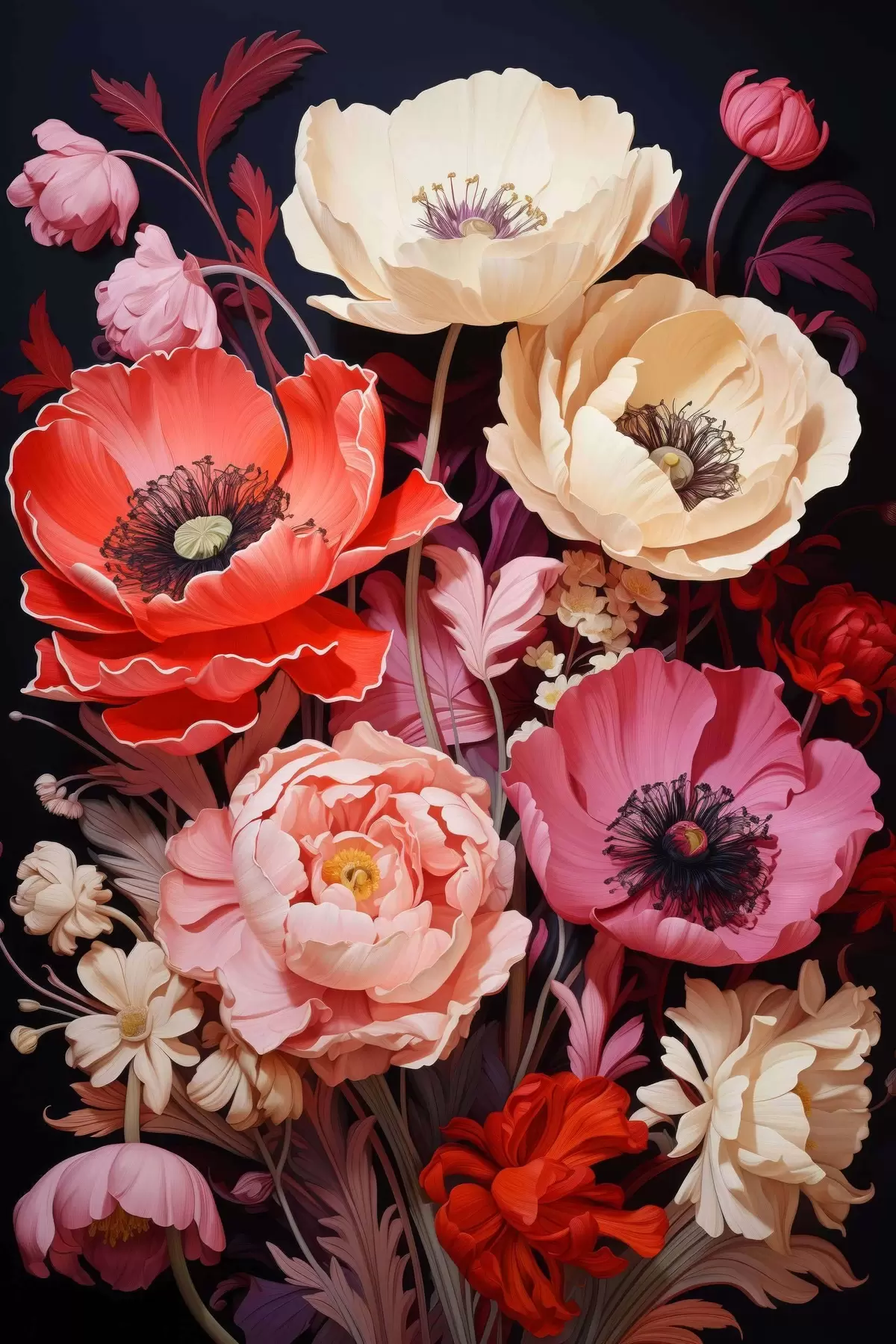 Quadri Bouquet di papaveri nelle tonalità del rosa e del rosso Nr s45600
