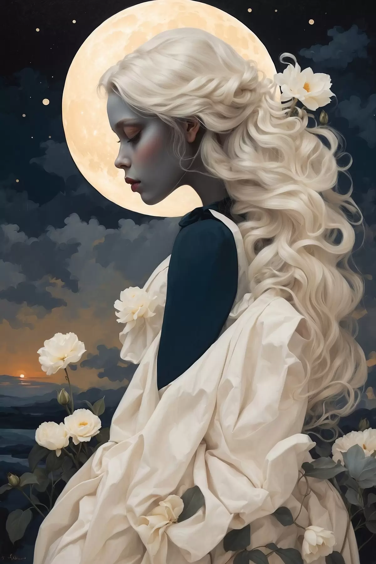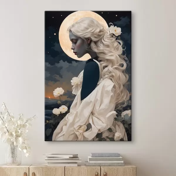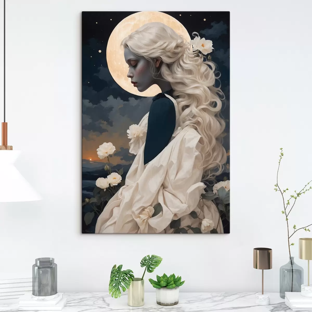 Quadri Donna con i capelli bianchi sotto la luna Nr s45622
