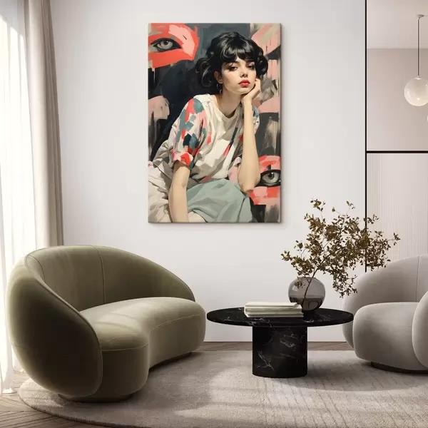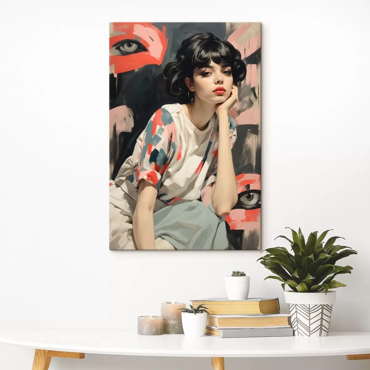 Quadri Ritratto di una ragazza su uno sfondo con occhi e tratti astratti Nr s45623