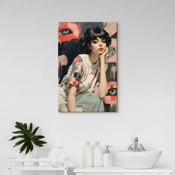 Quadri Ritratto di una ragazza su uno sfondo con occhi e tratti astratti Nr s45623