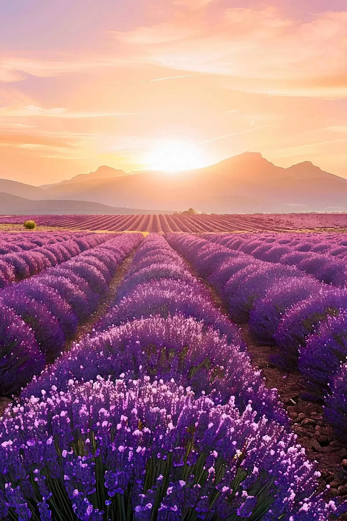 Quadri Tramonto in un campo di lavanda Nr s45663