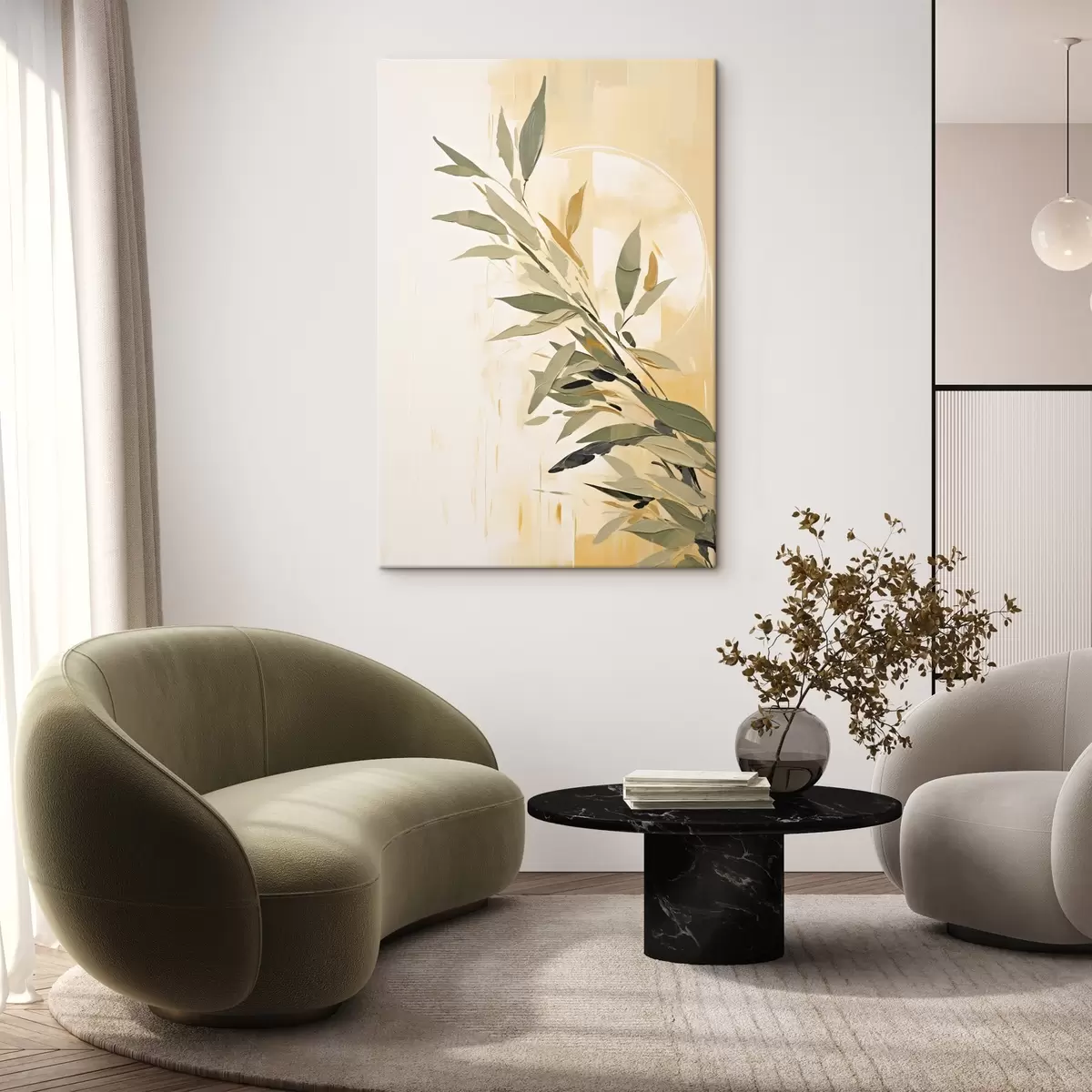 Quadri Ramo botanico con foglie verdi su sfondo caldo Nr s45690