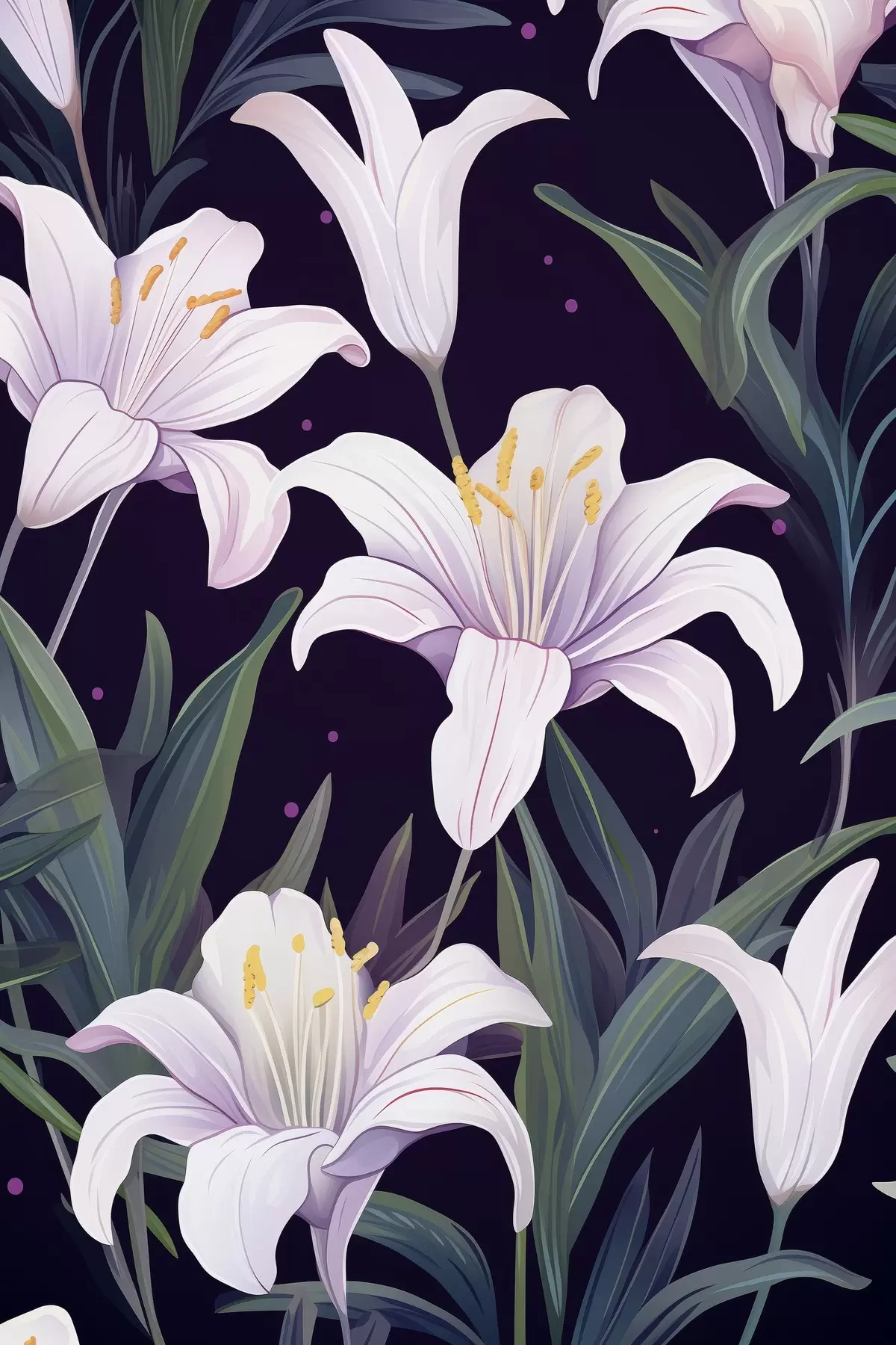 carta da parati Delicati gigli su sfondo scuro con foglie verdi nr. s45697