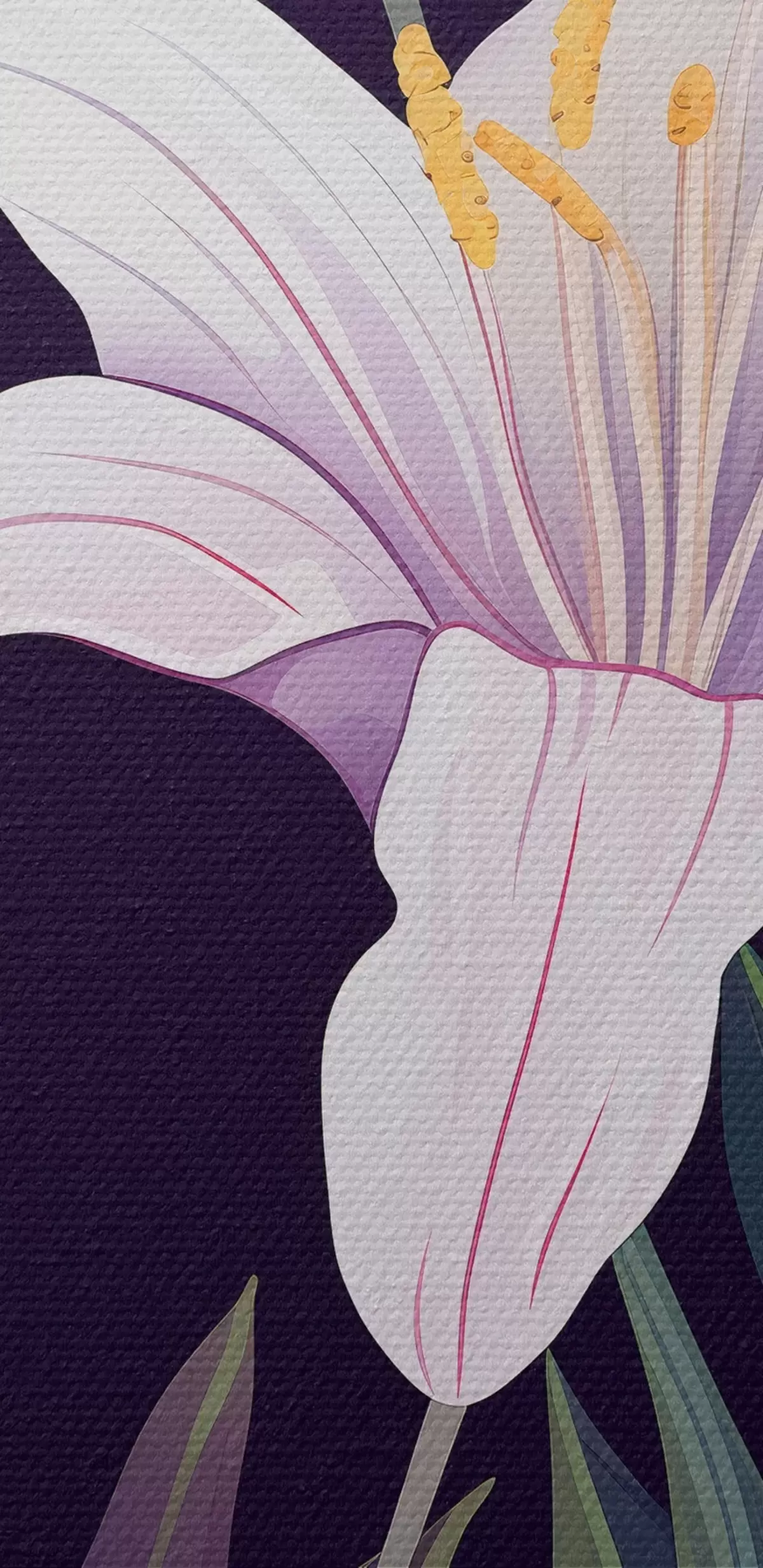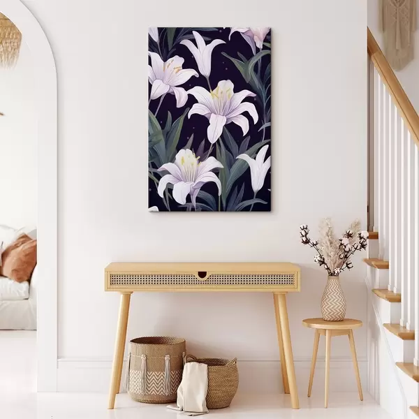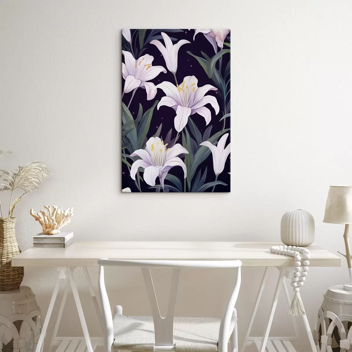 Quadri Delicati gigli su sfondo scuro con foglie verdi Nr s45697