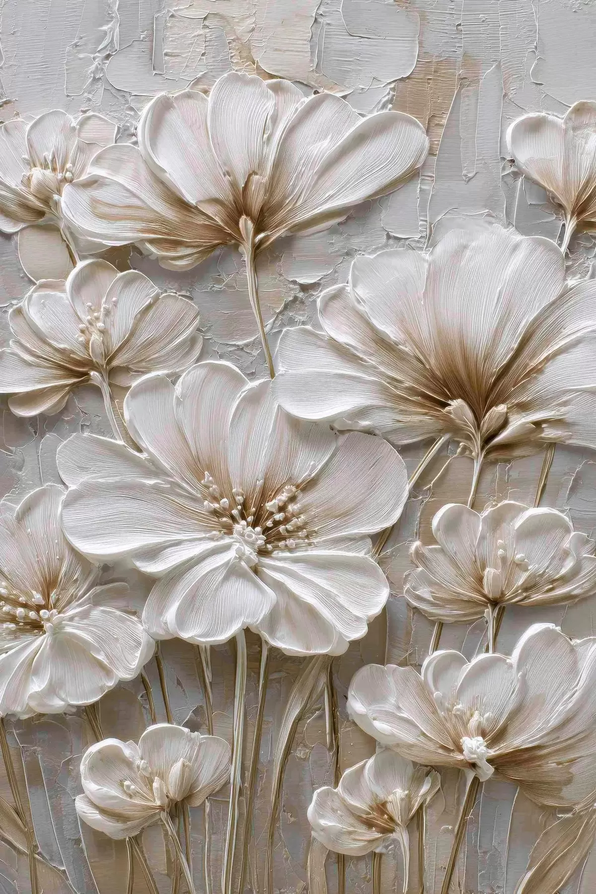 carta da parati fiori color crema con effetto impasto nr. s45712
