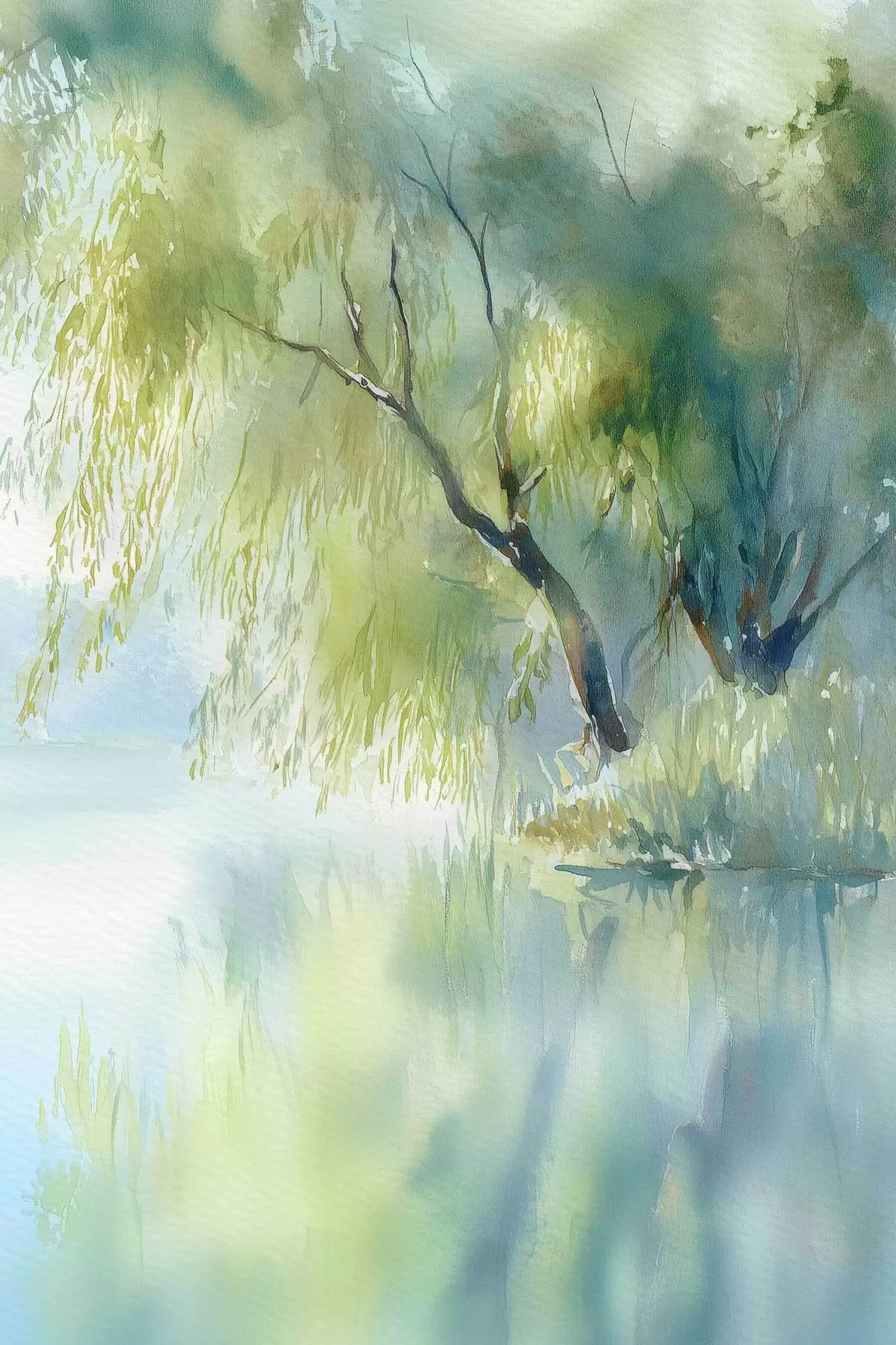Quadri salice sulla riva del lago in stile acquerello Nr s45715