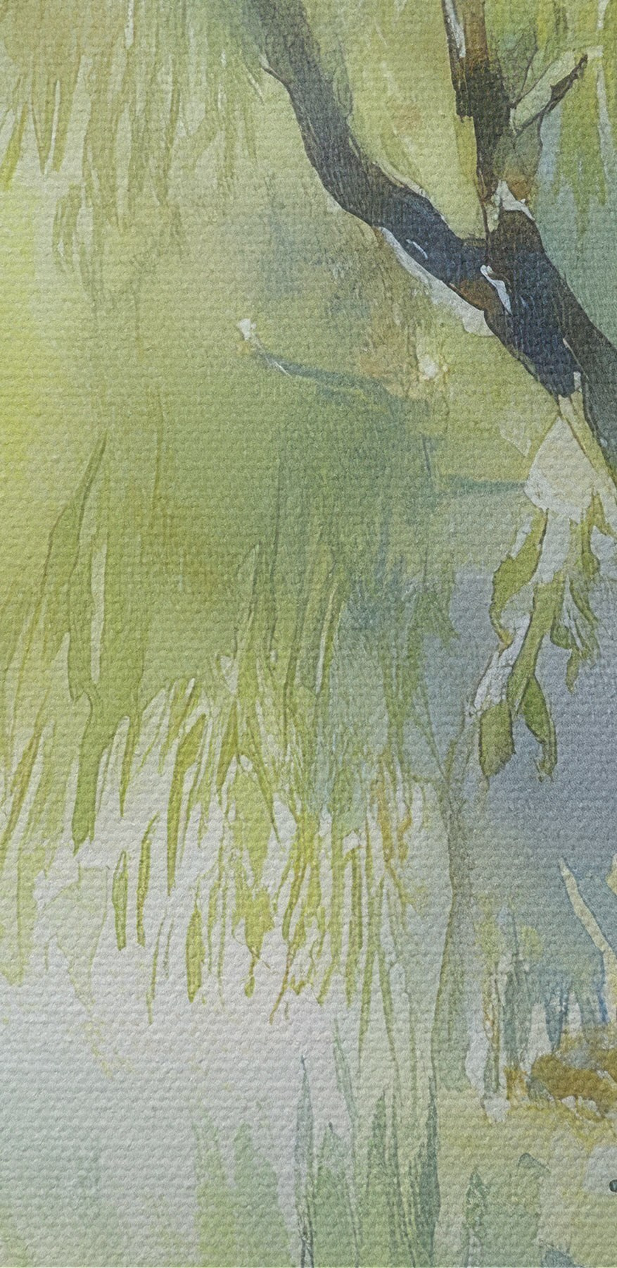carta da parati salice sulla riva del lago in stile acquerello nr. s45715