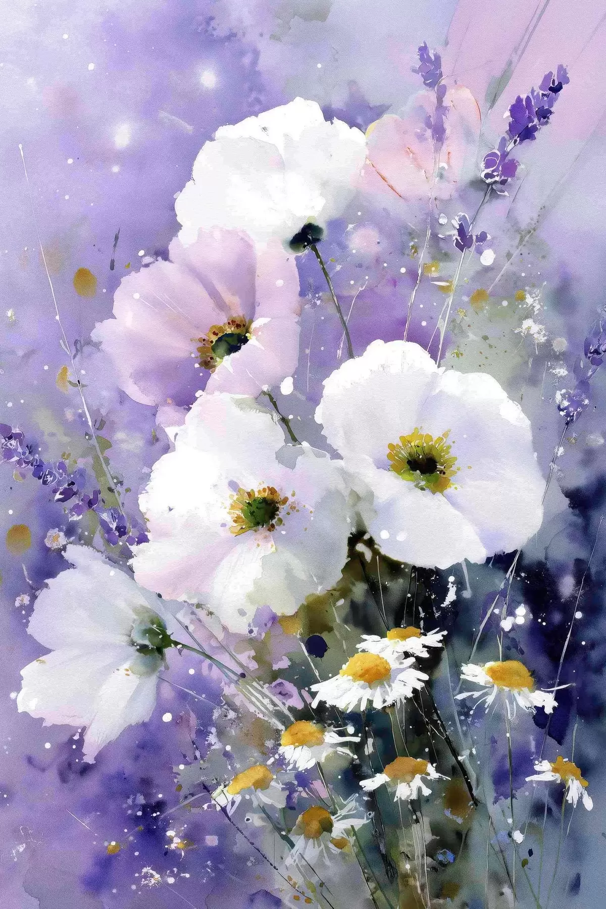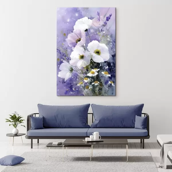 Quadri bouquet acquerellato nei toni del lilla e del bianco Nr s45719
