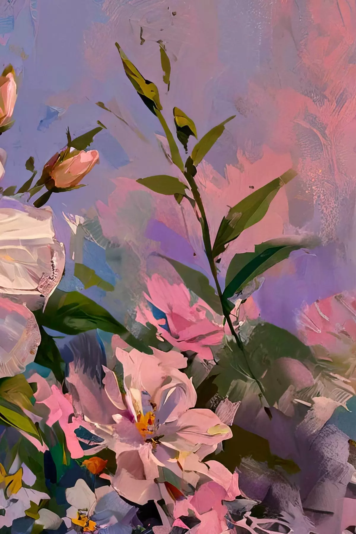 carta da parati fiori rosa in stile pittura a olio nr. s45724