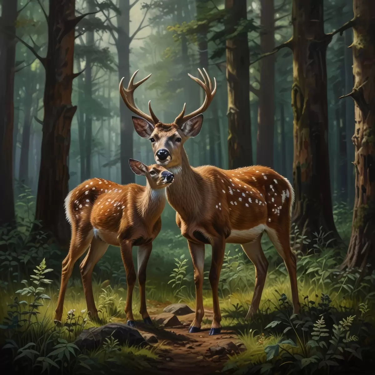 Quadri cervo con cerbiatto nella foresta Nr s45732