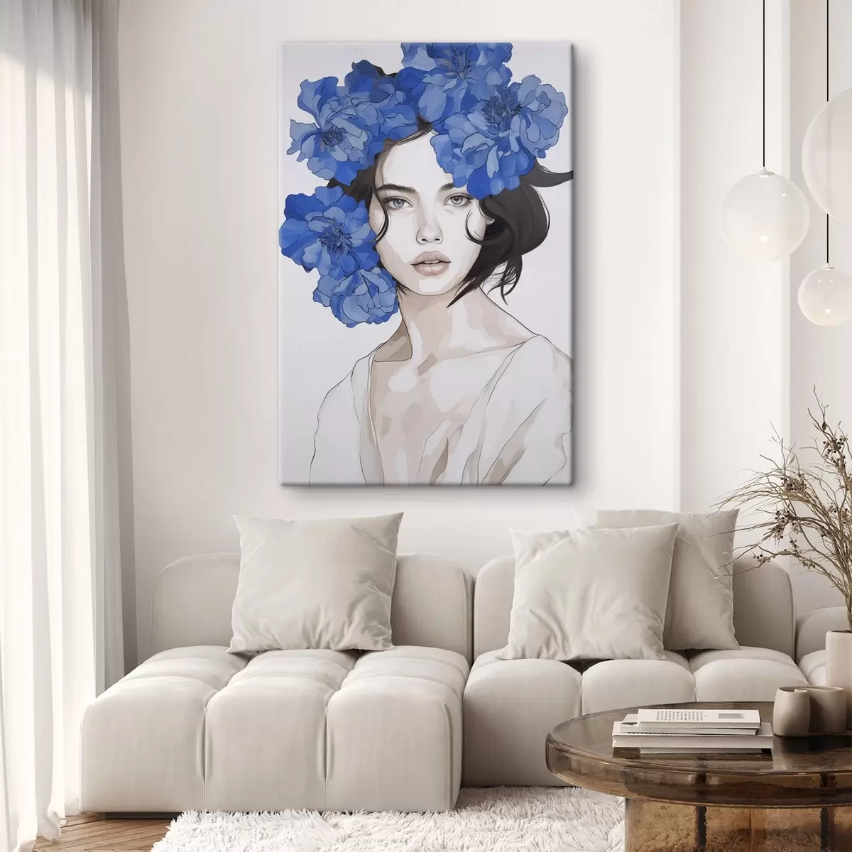 Quadri Ritratto di ragazza con fiori blu Nr s45756
