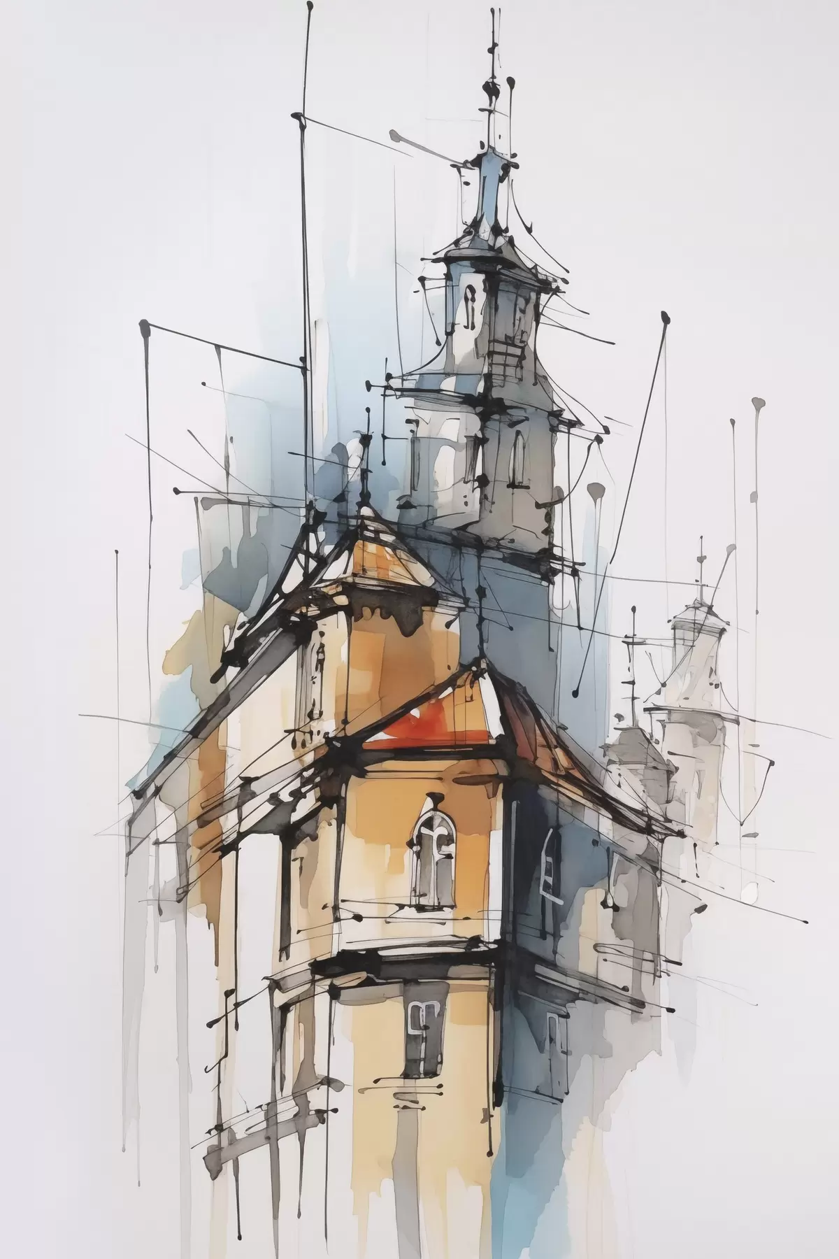 Quadri Case schizzo imitazione e acquerello Nr s45765