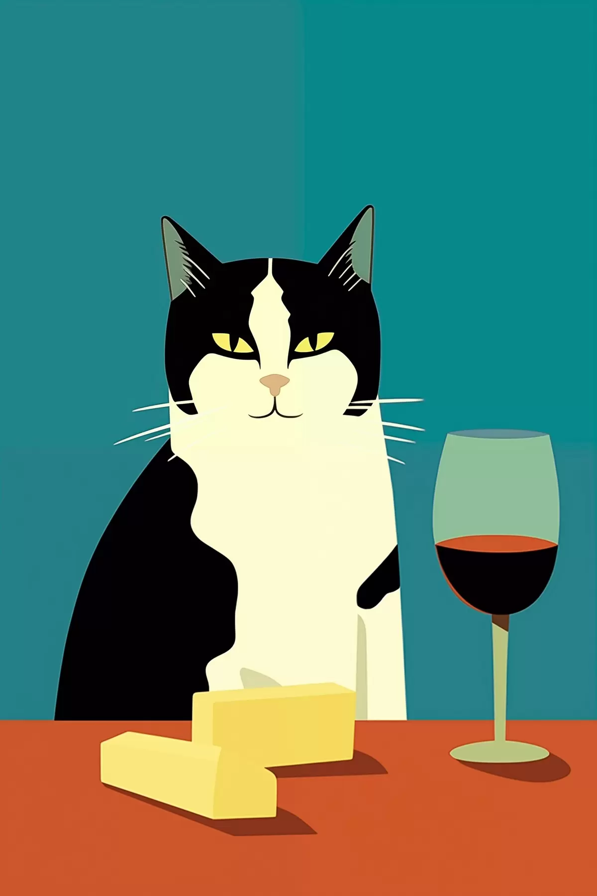 Quadri Gatto con vino e formaggio Nr s45801