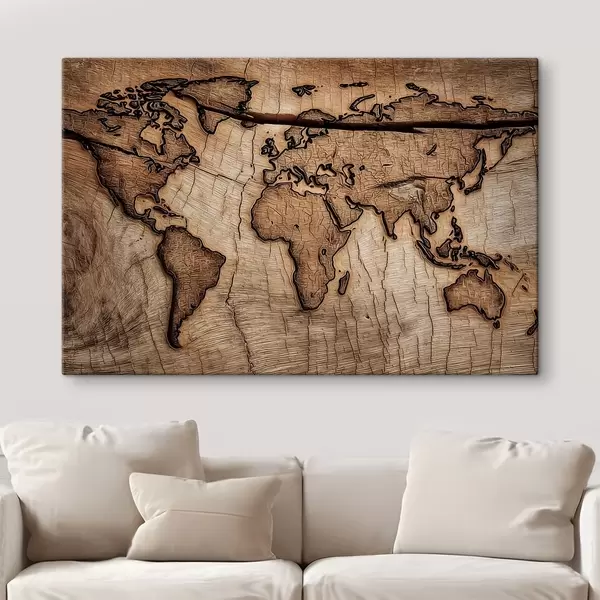 Quadri Mappa del mondo incisa su legno Nr s45805