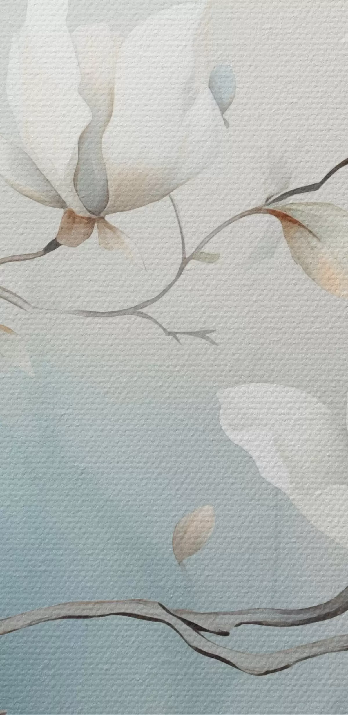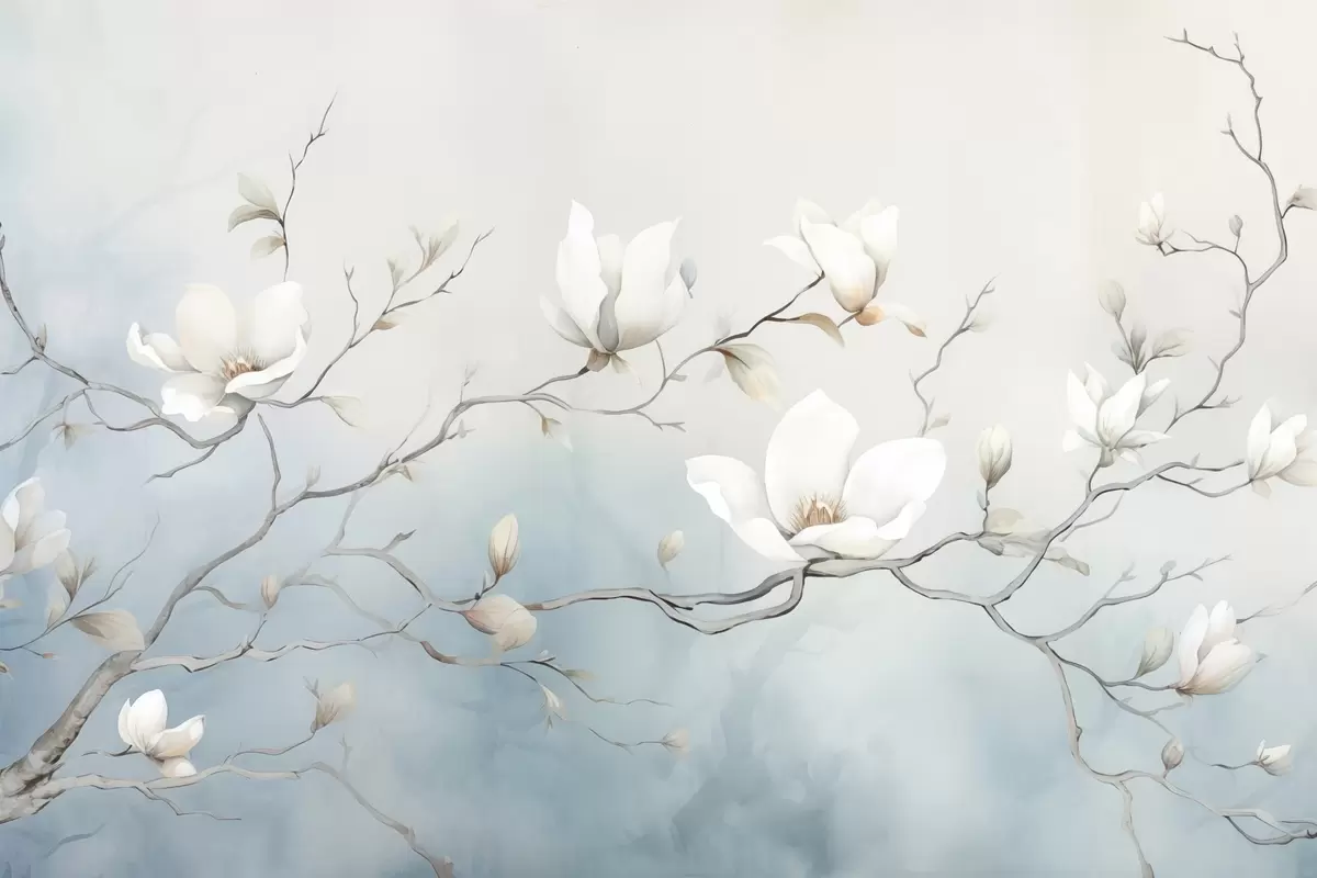 carta da parati Rami di magnolia con fiori bianchi su uno sfondo delicato nr. s45806