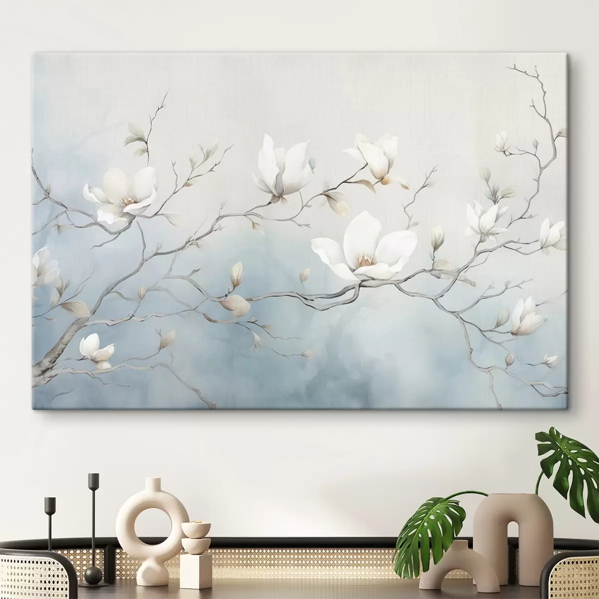 Quadri Rami di magnolia con fiori bianchi su uno sfondo delicato Nr s45806
