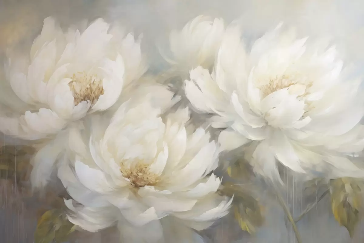 Quadri Tre rigogliose peonie bianche su uno sfondo delicato Nr s45808