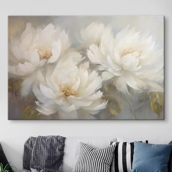 Quadri Tre rigogliose peonie bianche su uno sfondo delicato Nr s45808