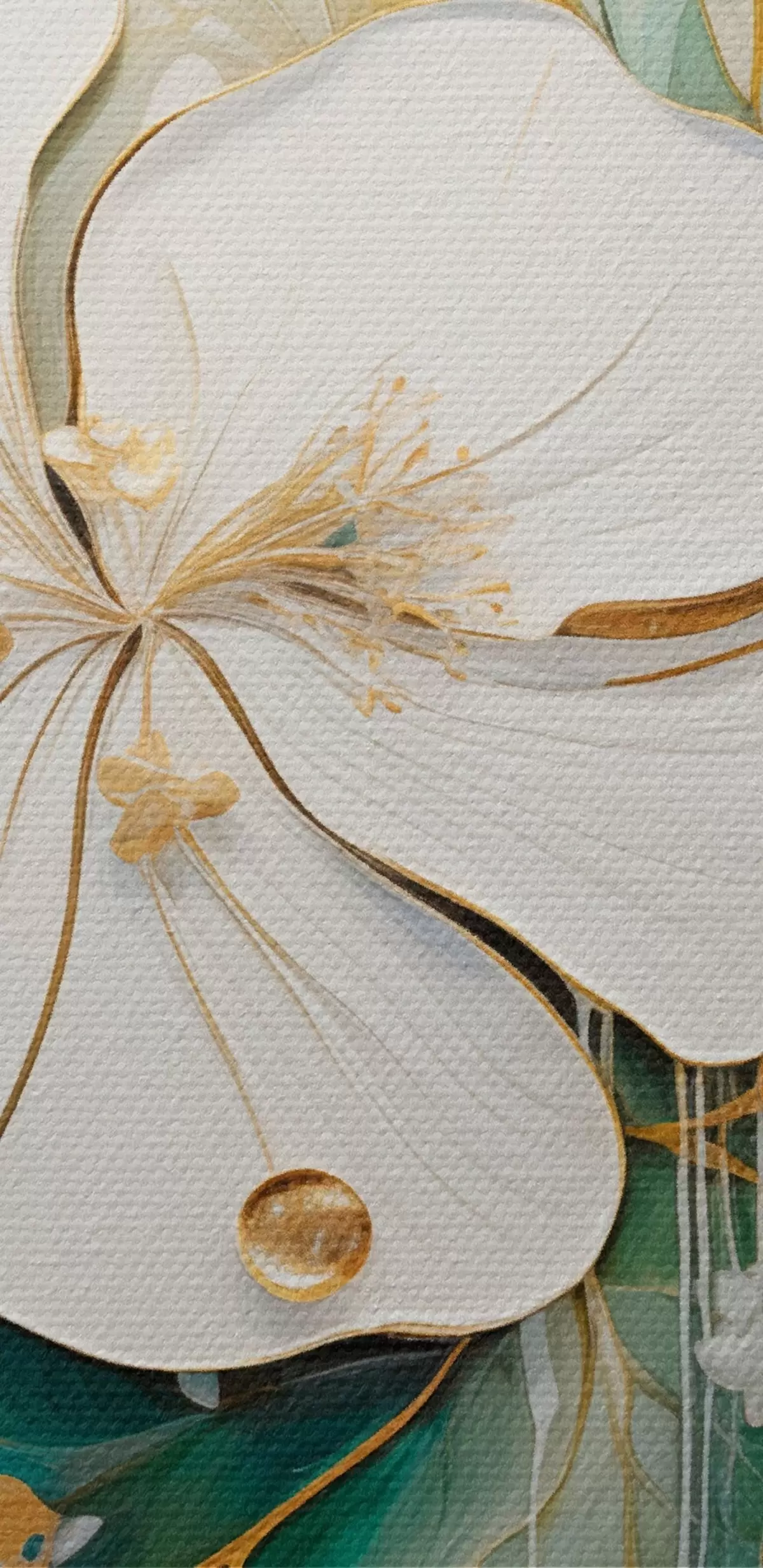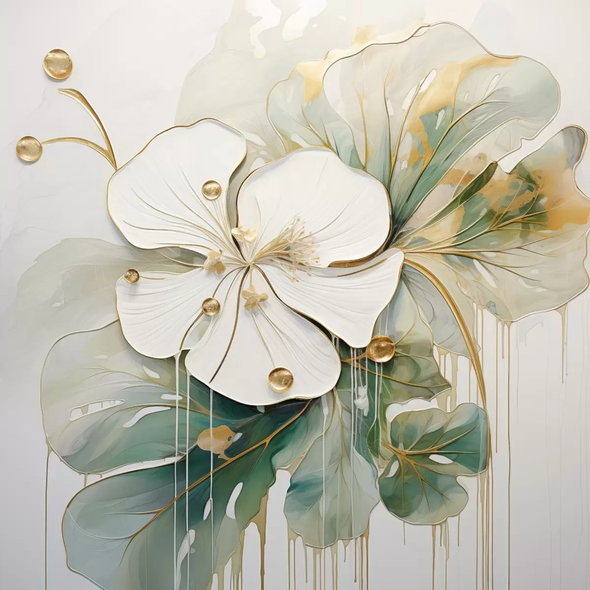 Quadri Un fiore bianco con dettagli giallo-arancio e foglie verdi Nr s45815