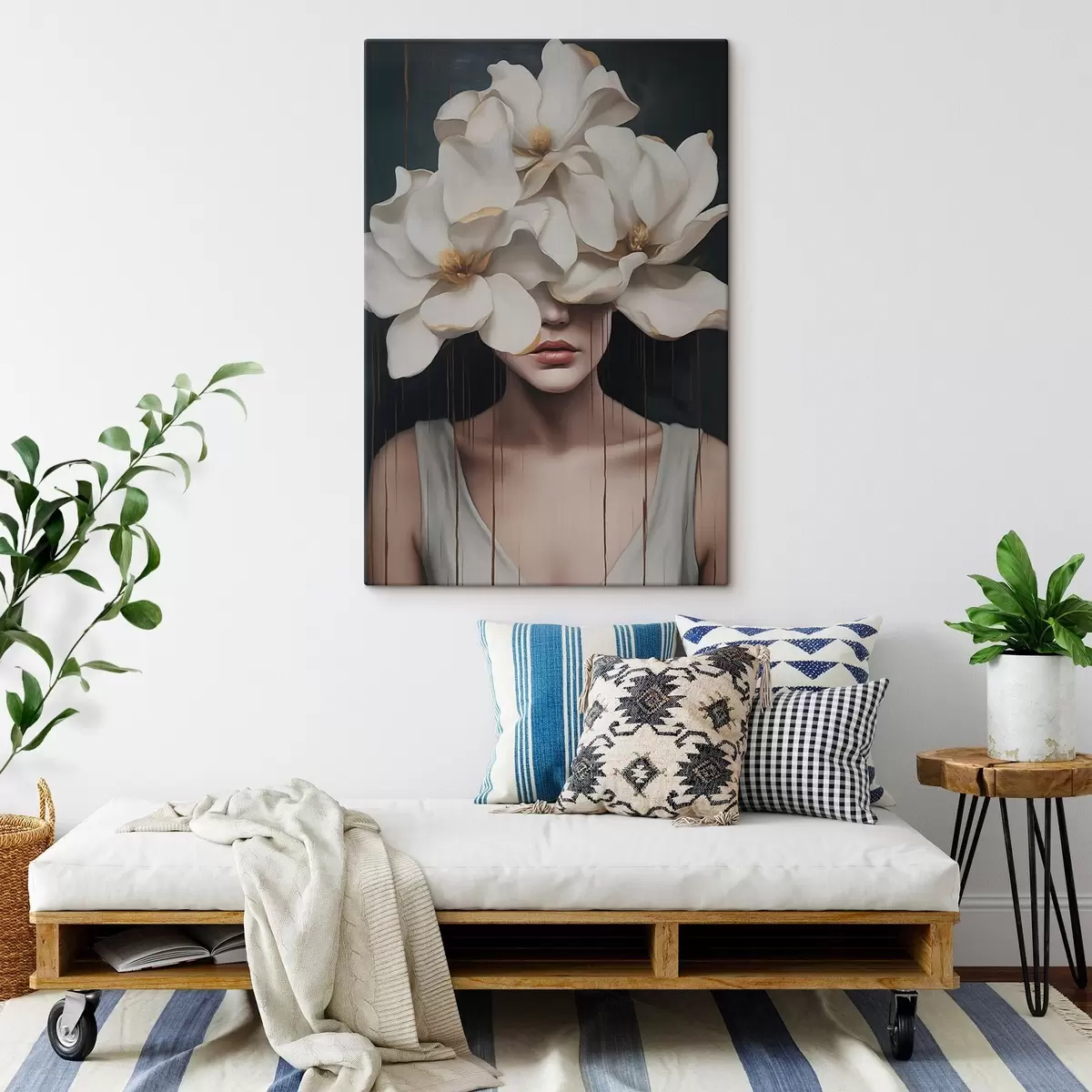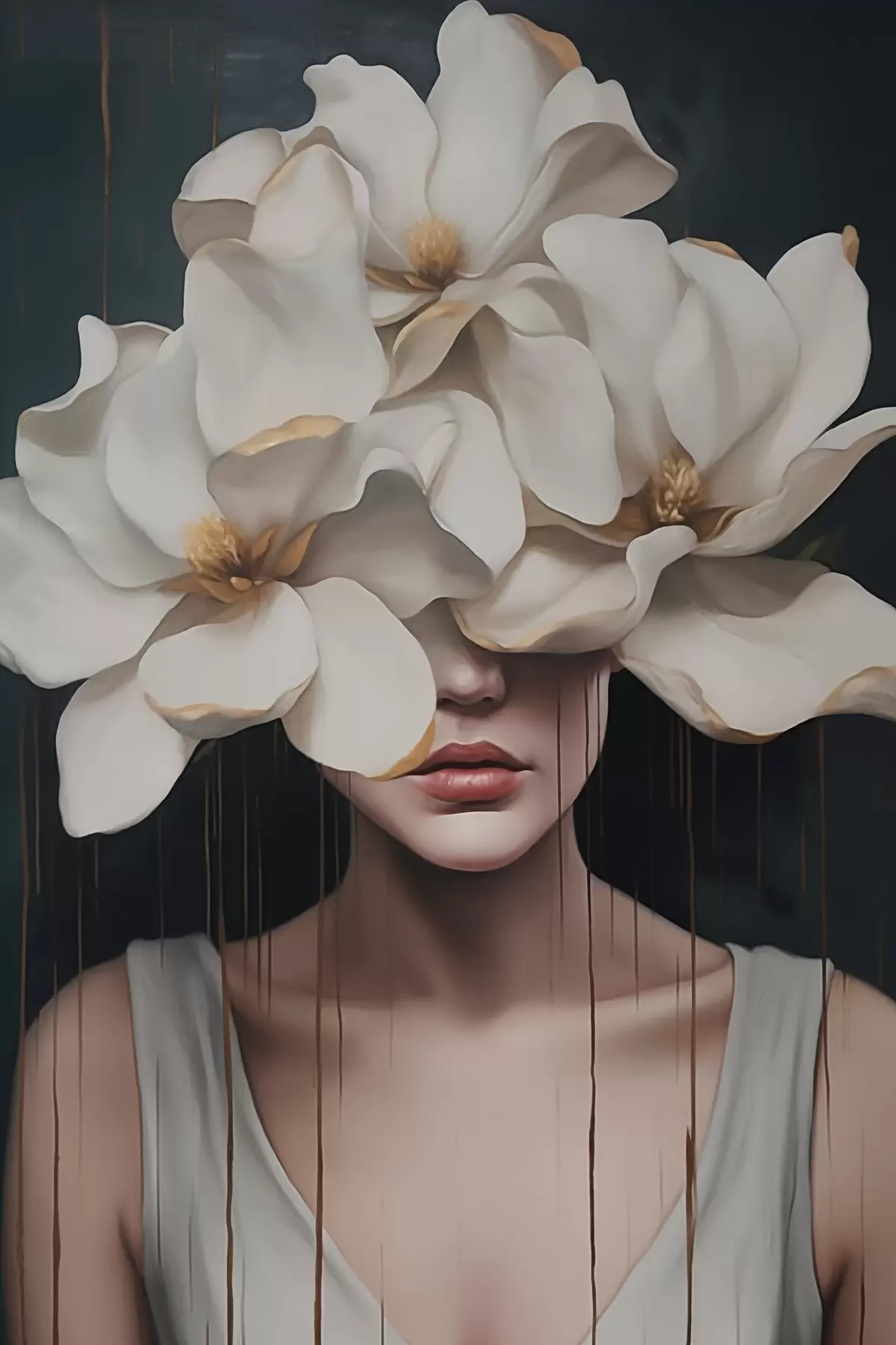 Quadri Donna con fiori bianchi sulla testa Nr s45843