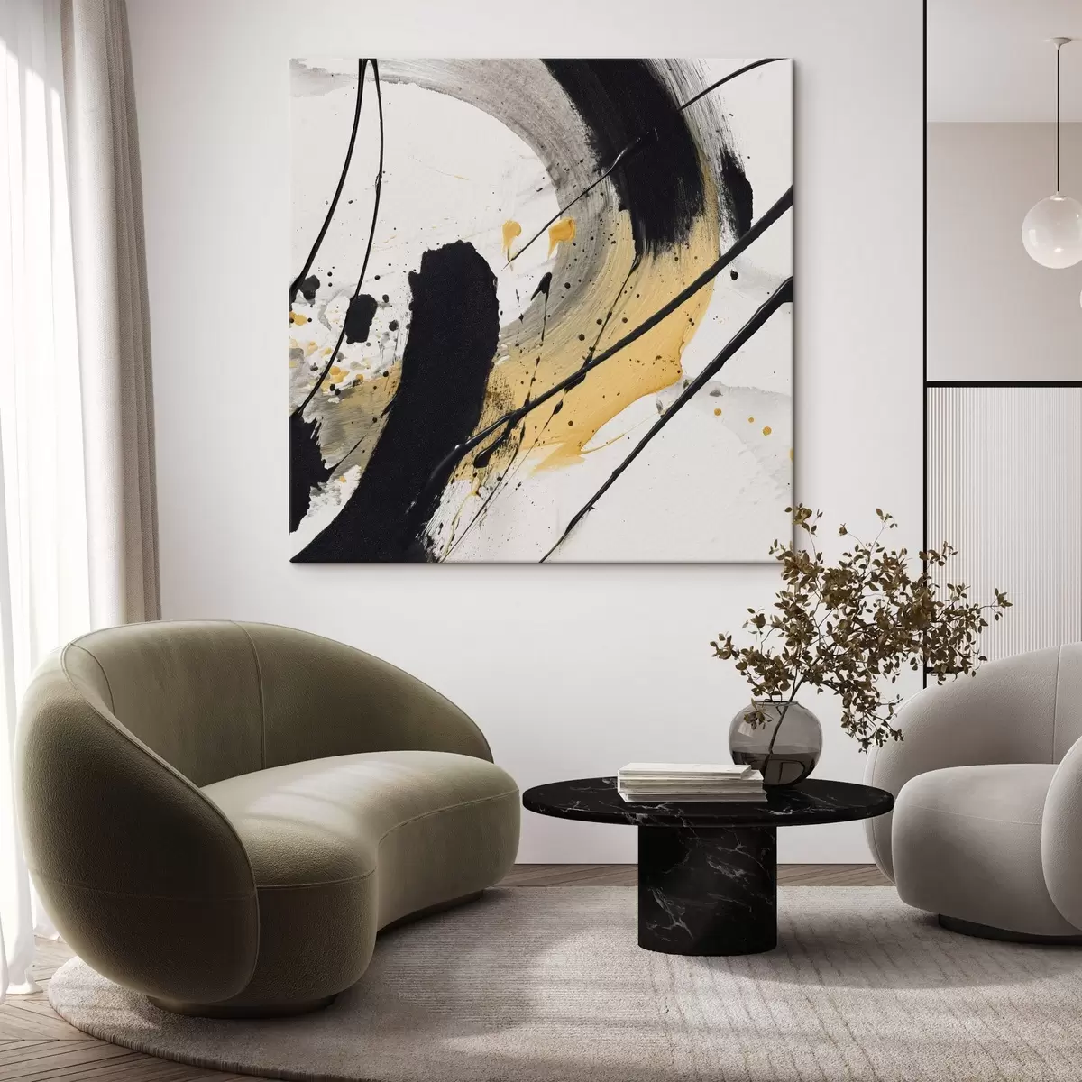 carta da parati Espressione in stile pittorico nero e giallo nr. s45847