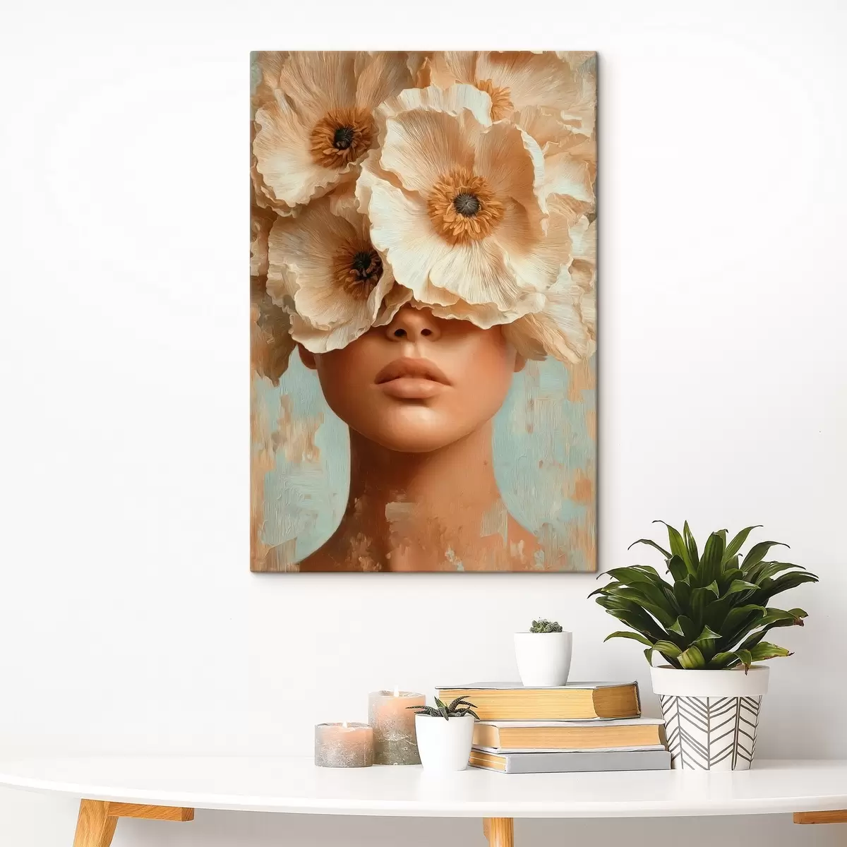 Quadri Ritratto con fiori beige che coprono gli occhi Nr s45870