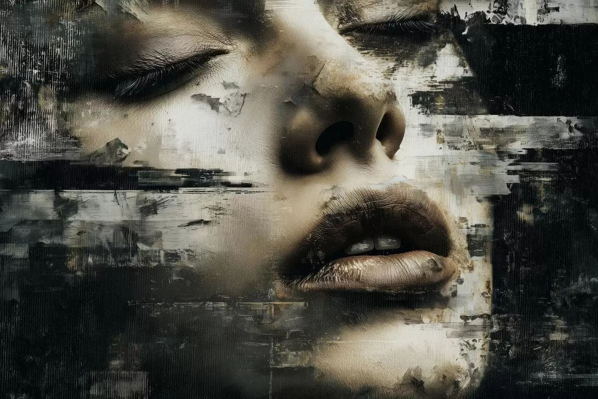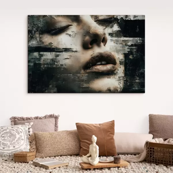 Quadri Ritratto femminile astratto con effetto glitch e texture Nr s45873