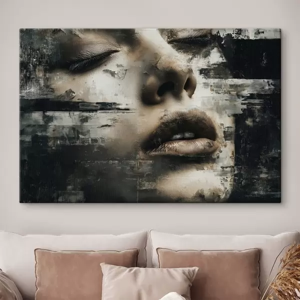 Quadri Ritratto femminile astratto con effetto glitch e texture Nr s45873
