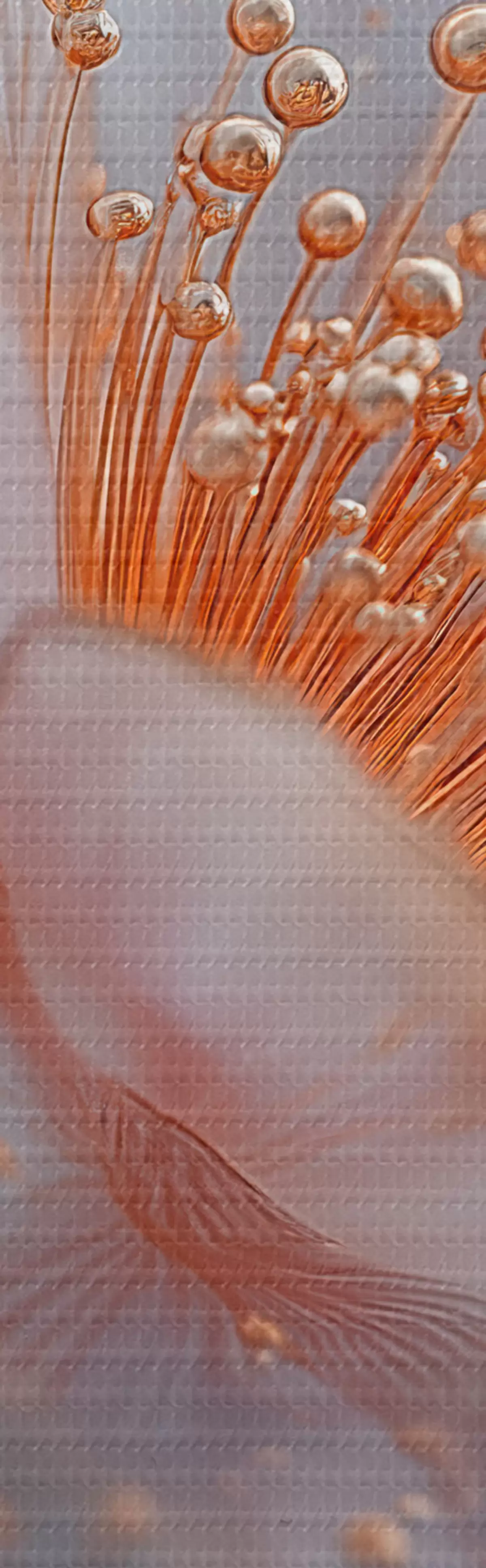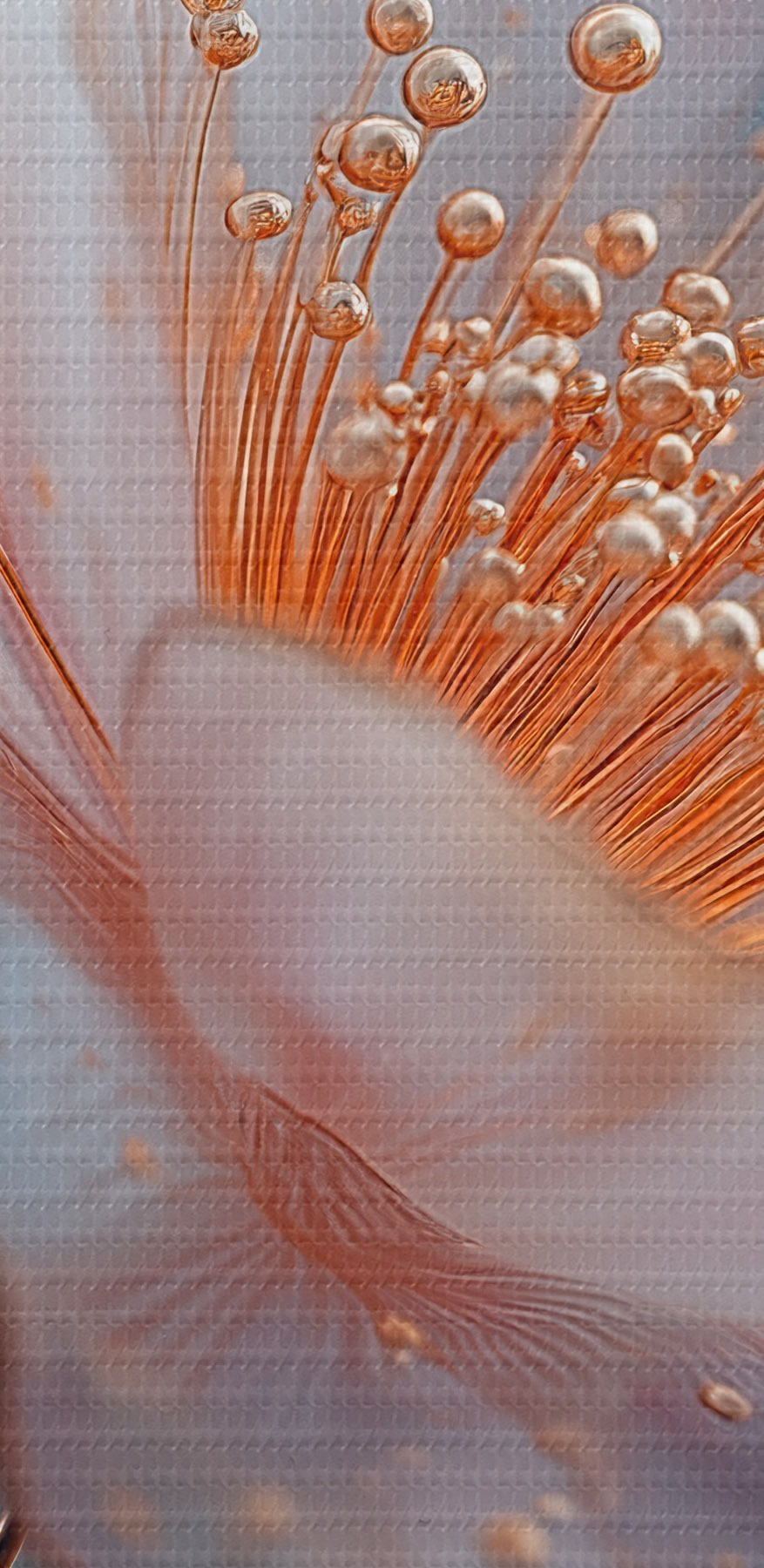 Quadri Fiore traslucido con stami color rame su sfondo blu Nr s45880