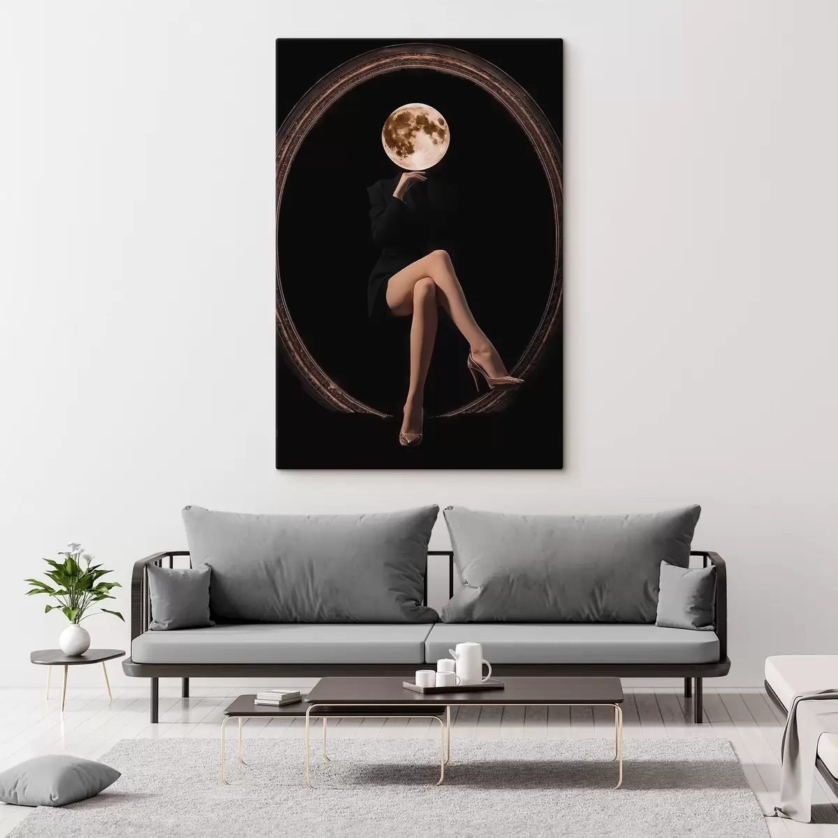 Quadri Silhouette con la luna al posto del viso, minimalismo Nr s45891