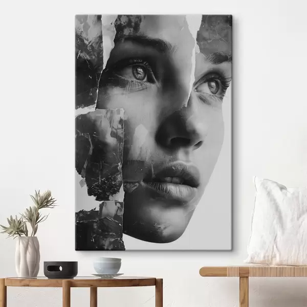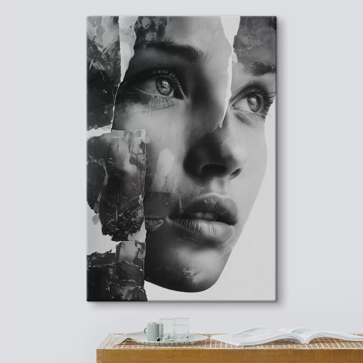 Quadri Ritratto collage in bianco e nero con strati strappati e testurizzati Nr s45898