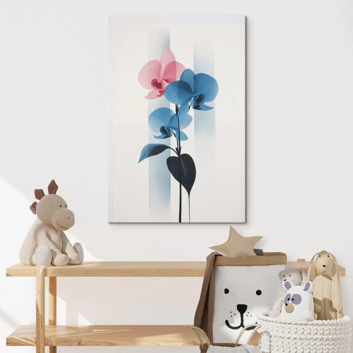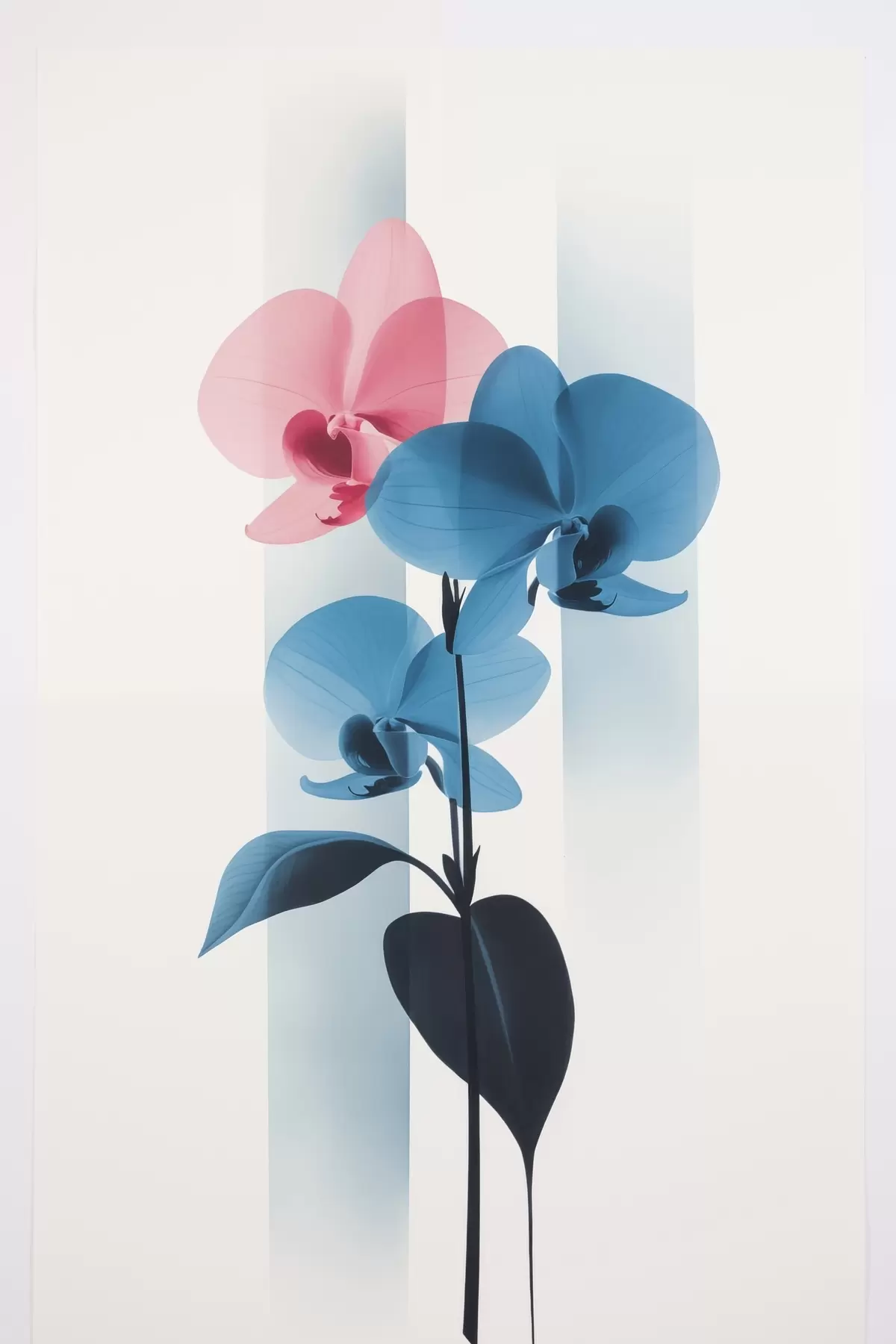 Quadri Orchidee con foglie su sfondo bianco con strisce verticali Nr s45925