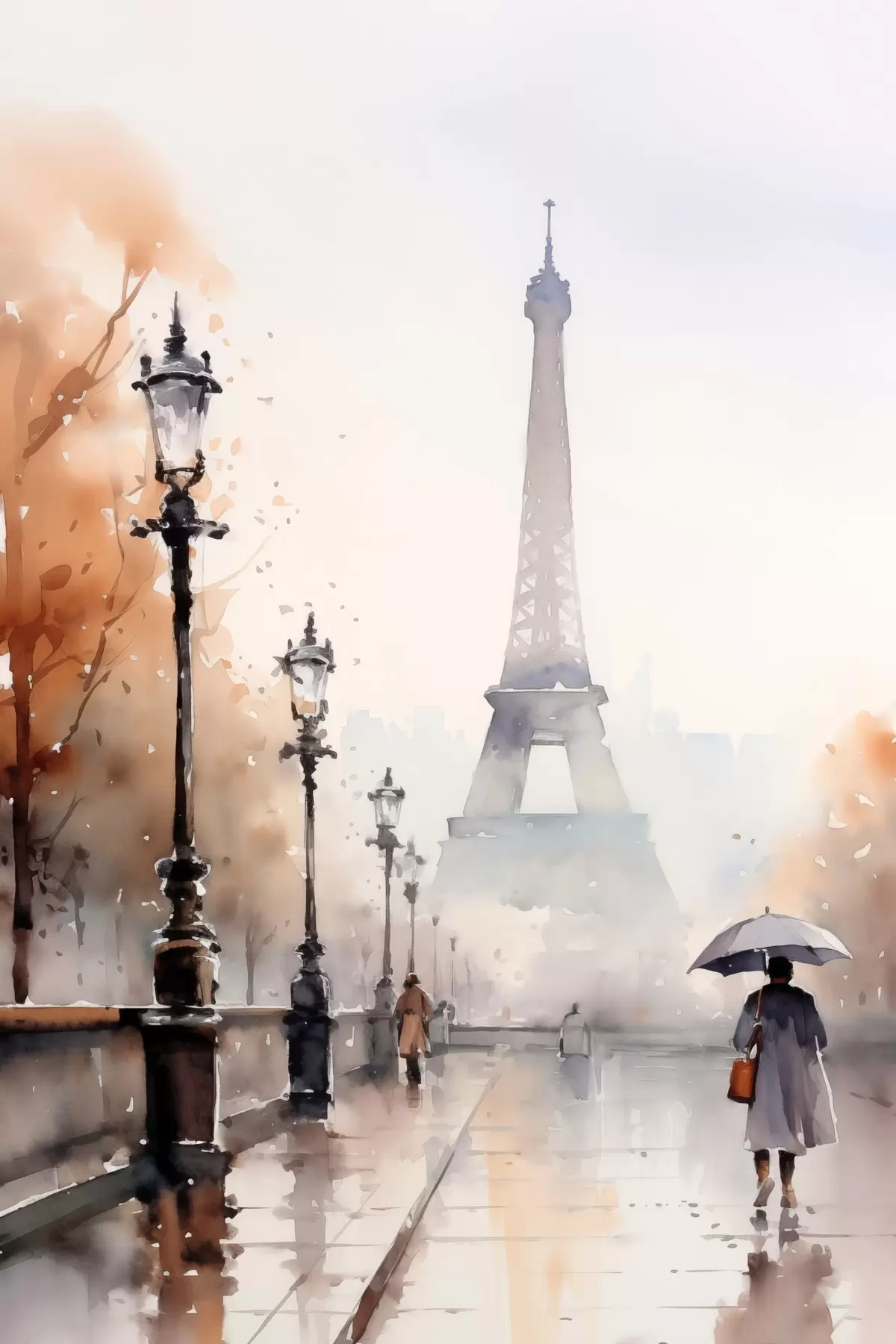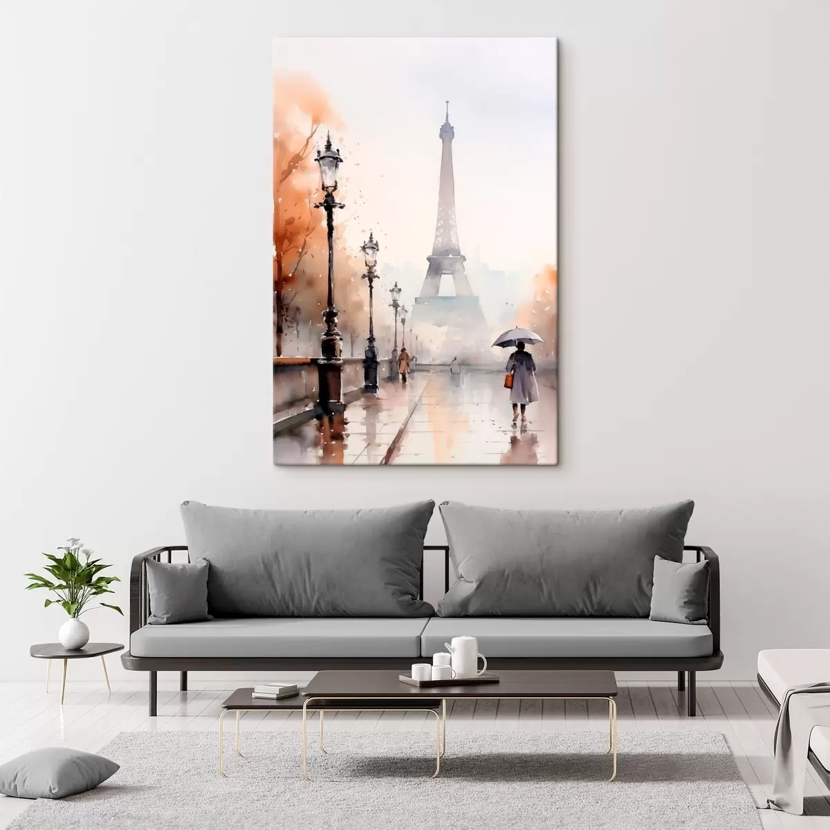 Quadri Una giornata piovosa a Parigi con la Torre Eiffel sullo sfondo e lampioni vintage Nr s45930