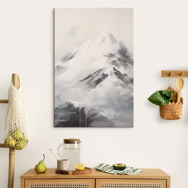 Quadri Cime innevate con ombre grigie, cielo grigio, pennellate, texture, minimalista Nr s45932