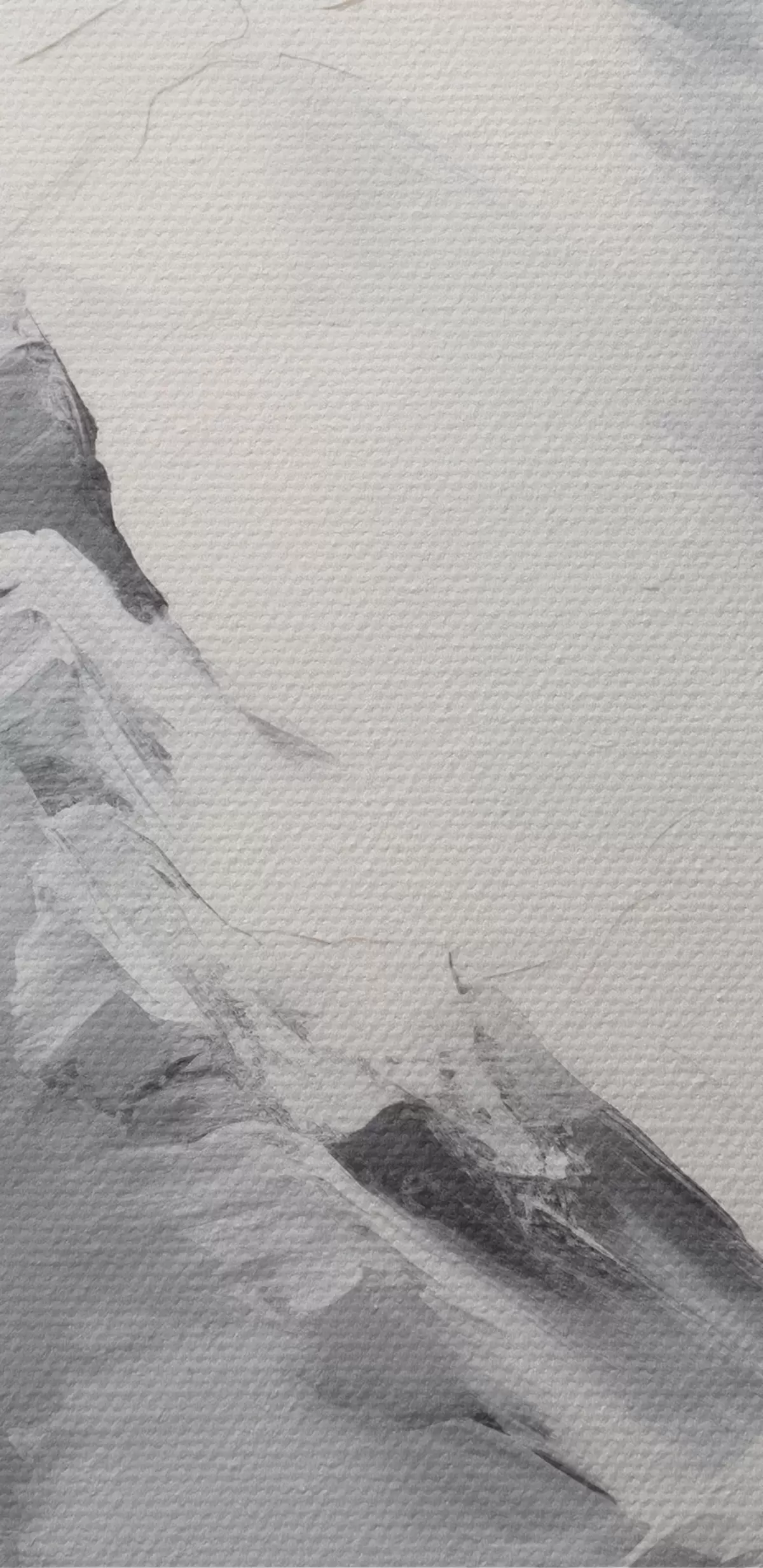 Quadri Cime innevate con ombre grigie, cielo grigio, pennellate, texture, minimalista Nr s45933